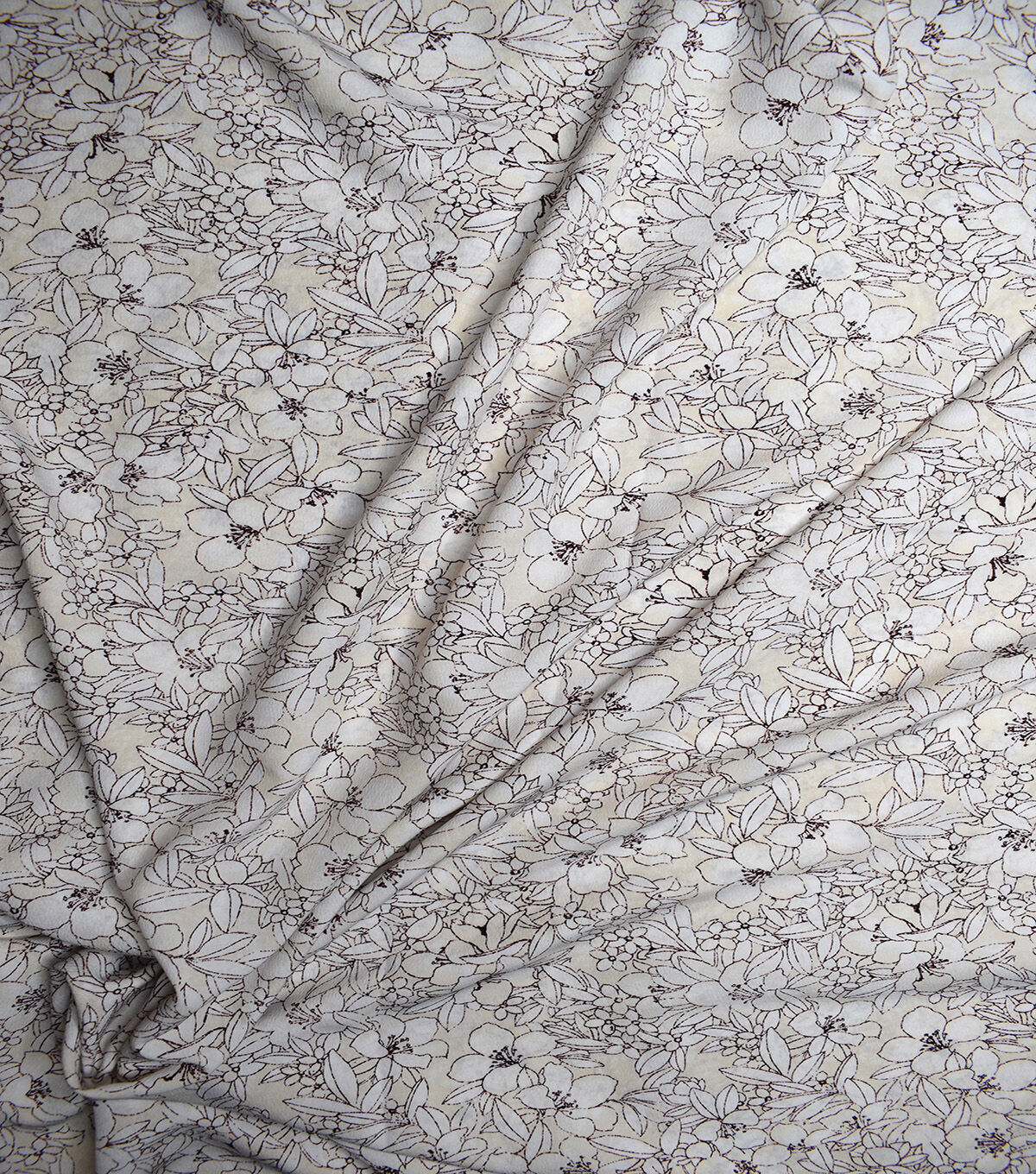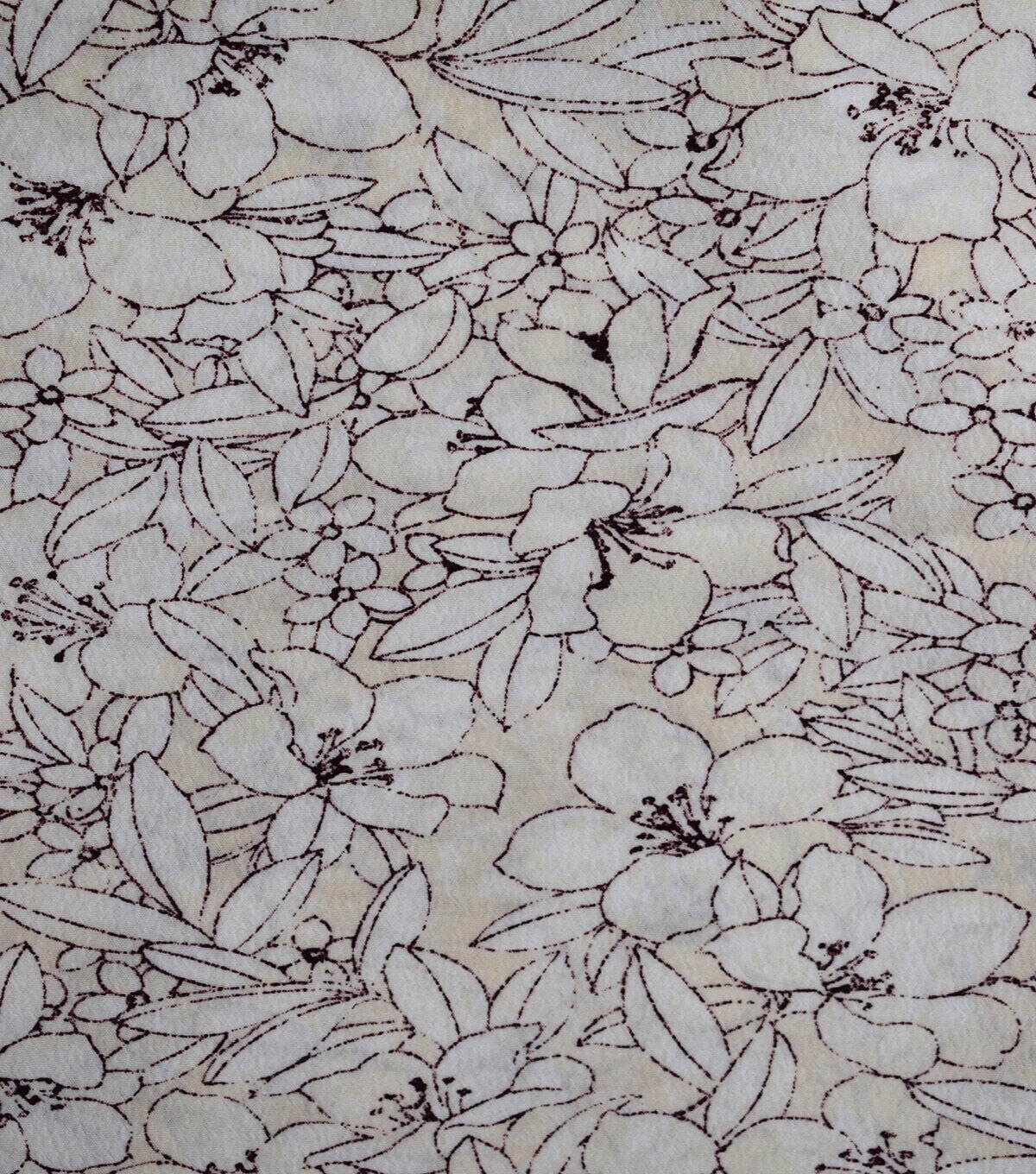 Cream Sketched All Over Flower Silky Prints Fashion Fabric