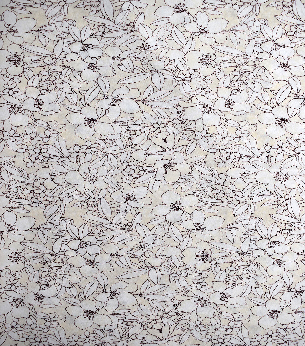 • Cream Sketched All Over Flower Silky Prints Fashion Fabric