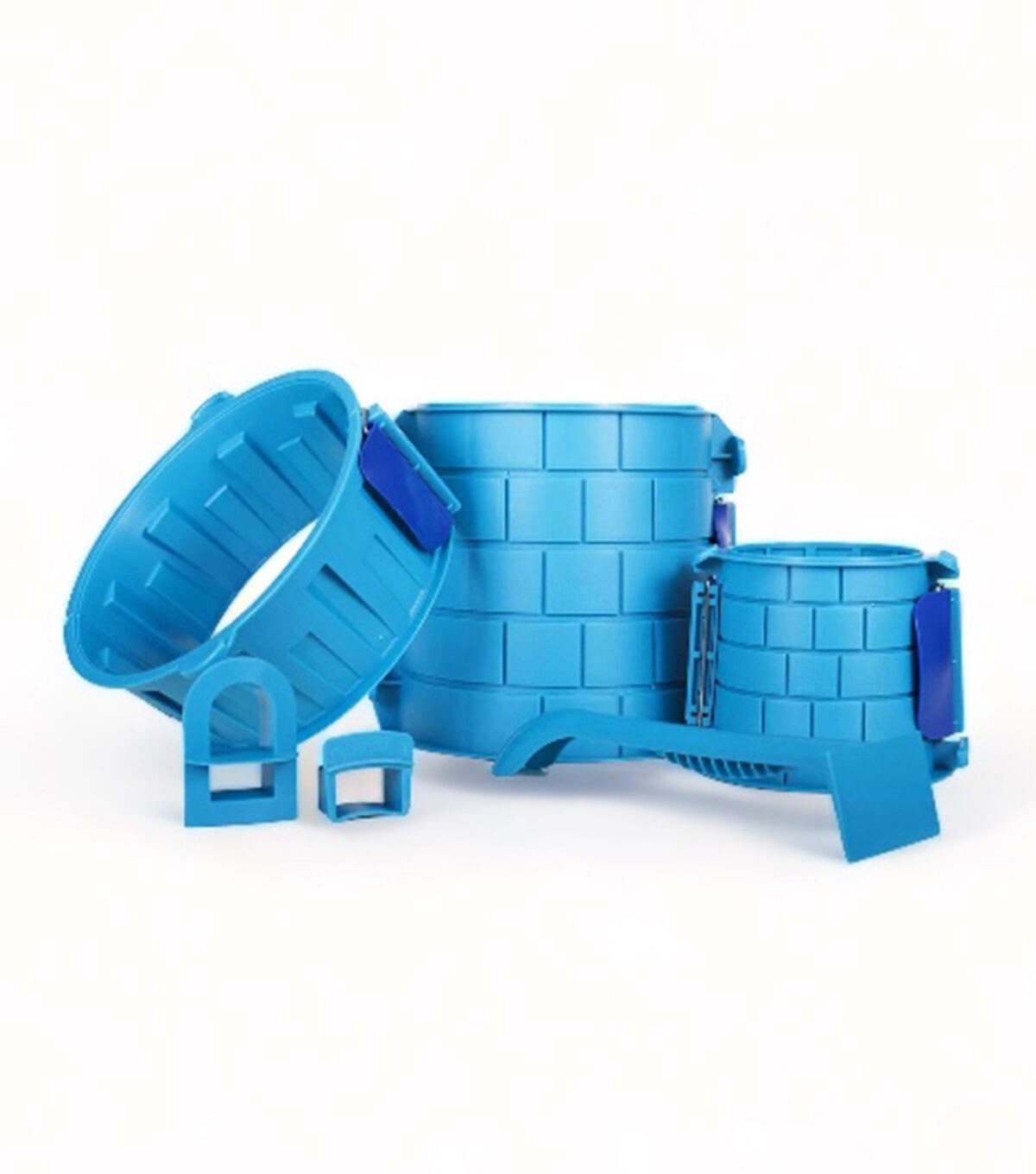 Our split molds allow you to build beautiful sand or snow structures in a short amount of time. Just buckle it, fill it and Create A Castle. Our premium pro tower kit includes a 10 inch split cylinder, a stackable 6 inch split system cylinder for additional height, a corbel to add stabilization and a beautiful effect in between the towers, battlement brick form, window cutter and a mesh backpack for simple transportation and cleanup!