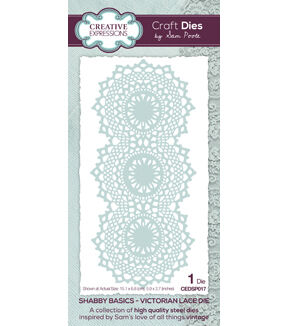 Inspired by Sam's love of all things vintage this single Victorian Lace die will be great for creating backgrounds for cards, journals, home decor, scrapbooks, mixed media. Why not mix and match with the other Shabby inspired dies and vintage style stamps from Sam? The die is compatible with most home die cutting machines. Single die 15.1x6.8 cm. Imported.