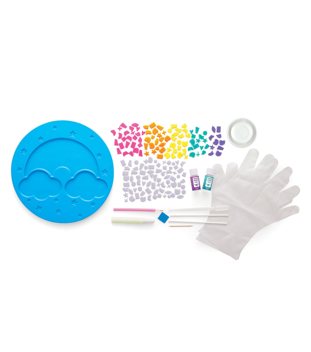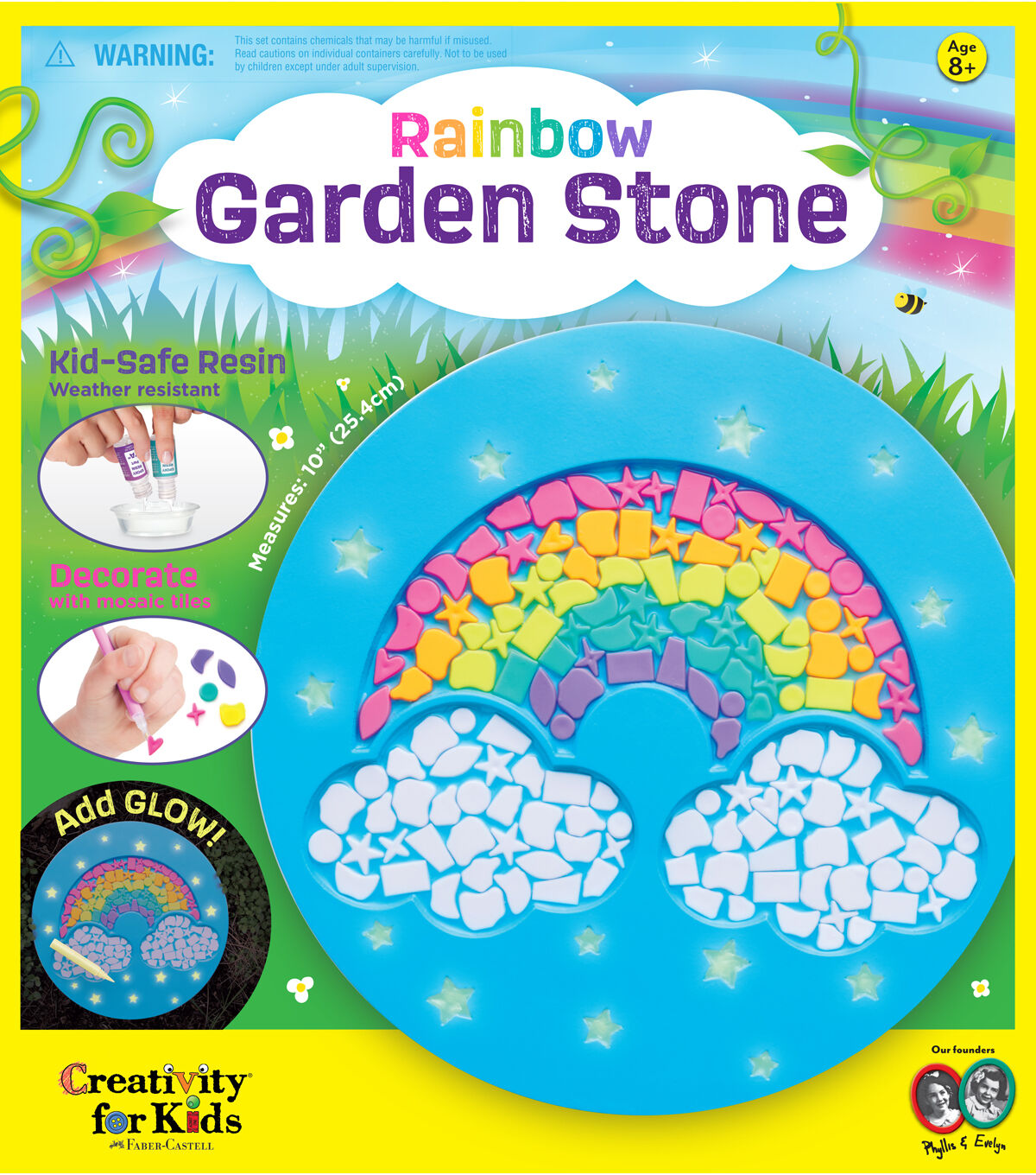 Encourage kids to connect with nature, express their creativity and show off their mosaic making skills with Creativity for Kids decorative garden stone kits. Everything needed is included! Perfect for all skill levels, the 10” round cement garden stone with rainbow pattern comes ready to decorate. Simply mix and pour kid-safe, weather resistant resin into the mold. Pick and place colorful mosaic tiles with the easy-to-use stylus. Add glow in the dark accents with glow paint and let dry. Find the perfect spot in your yard or garden to display your child’s decorative work of art. Your Rainbow Garden Stone will look cool long after the sun goes down with a subtle glowing effect. Make it a family project! This garden activity is ideal for parents, children and family members to complete together. The Rainbow Garden Stone is a great keepsake to enjoy for years to come. Collect all 3 - Rainbow, Turtle and Butterfly Garden Stone activity kits to spruce up your outdoor lawn & garden décor – just in time for spring and summer!