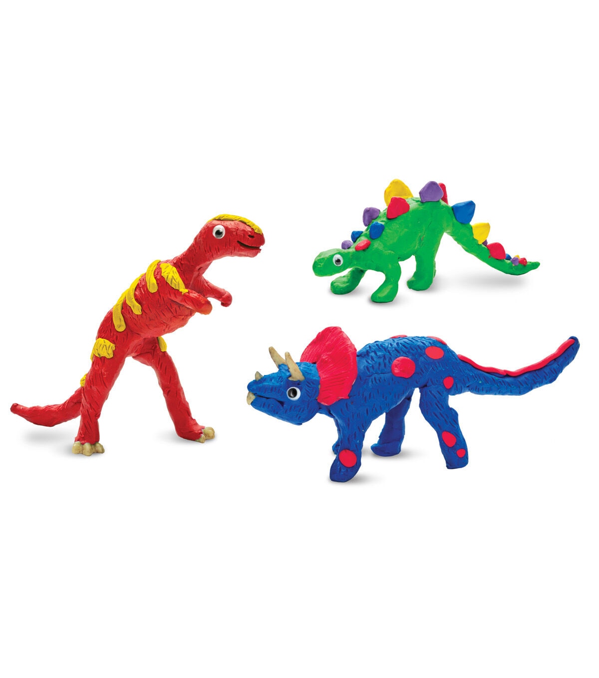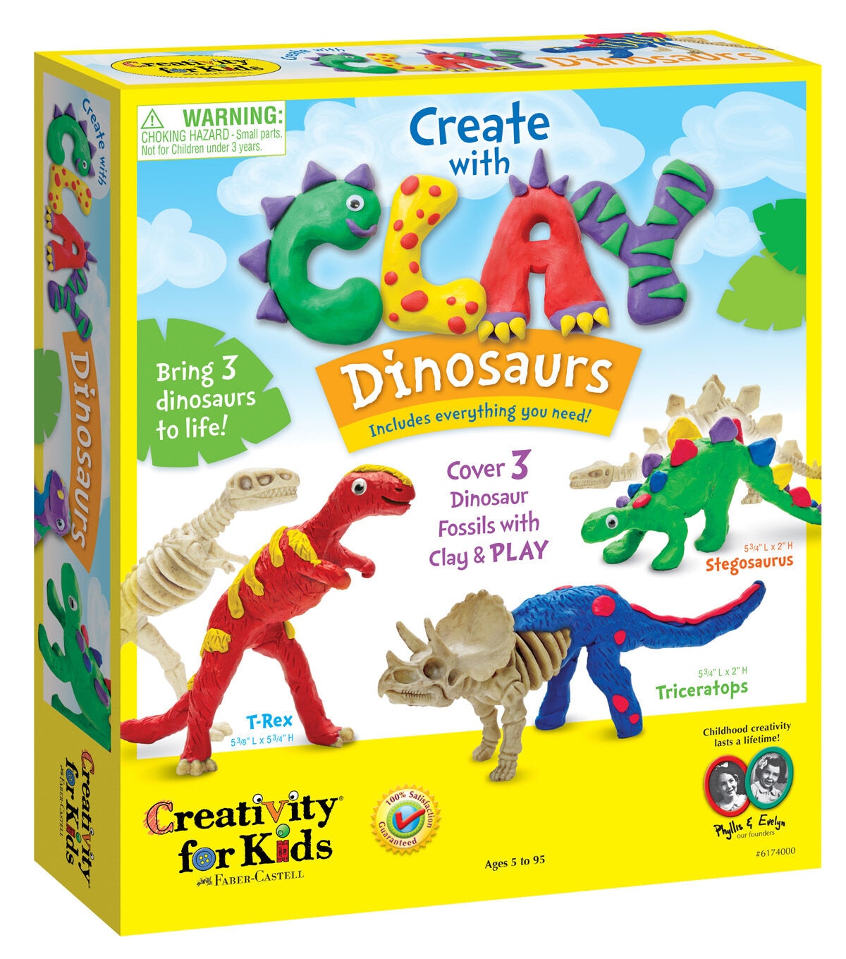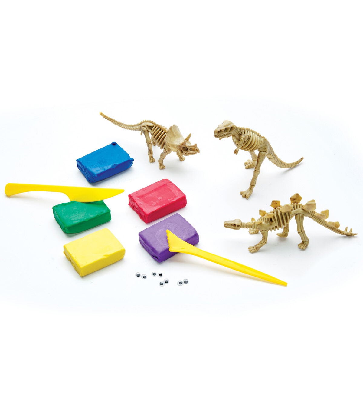 The Creativity for Kids Create with Clay Dinosaurs Kit combines art, adventure, science and fun for the perfect STEAM experience. You can bring three dinosaurs to life by molding and covering them with colorful clay. The kit consists of three plastic dinosaur skeletons including a T-Rex, Triceratops and Stegosaurus, 50 g each of clay colors in red, blue, green, yellow and purple, modeling tools and wiggly eyes. Use the leftover clay to make even more creatures or plants. Dinosaurs allow children to both learn and fantasize about prehistoric times through play. This kit also includes fun dinosaur facts.