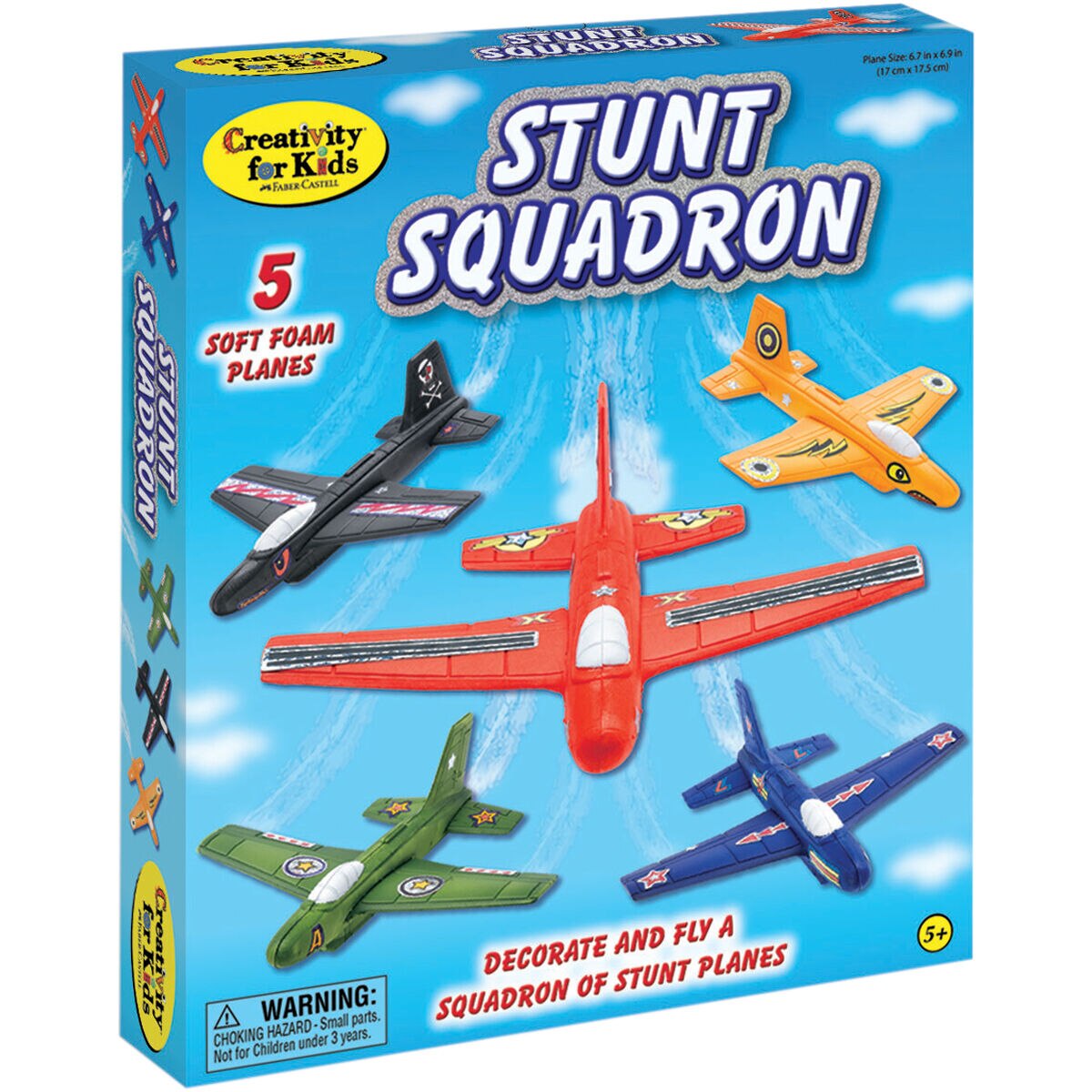 Customize the fleet of five durable foam planes in this Creativity for Kids Stunt Squadron Kit with color-in stickers, markers and metallic accents. The five durable foam planes are soft but tough and easy to assemble. These planes are perfect for indoor or outdoor use. The wingspan measures 7 inches.