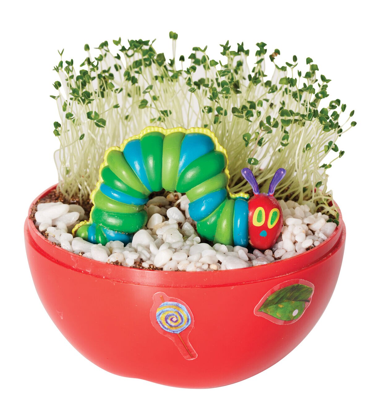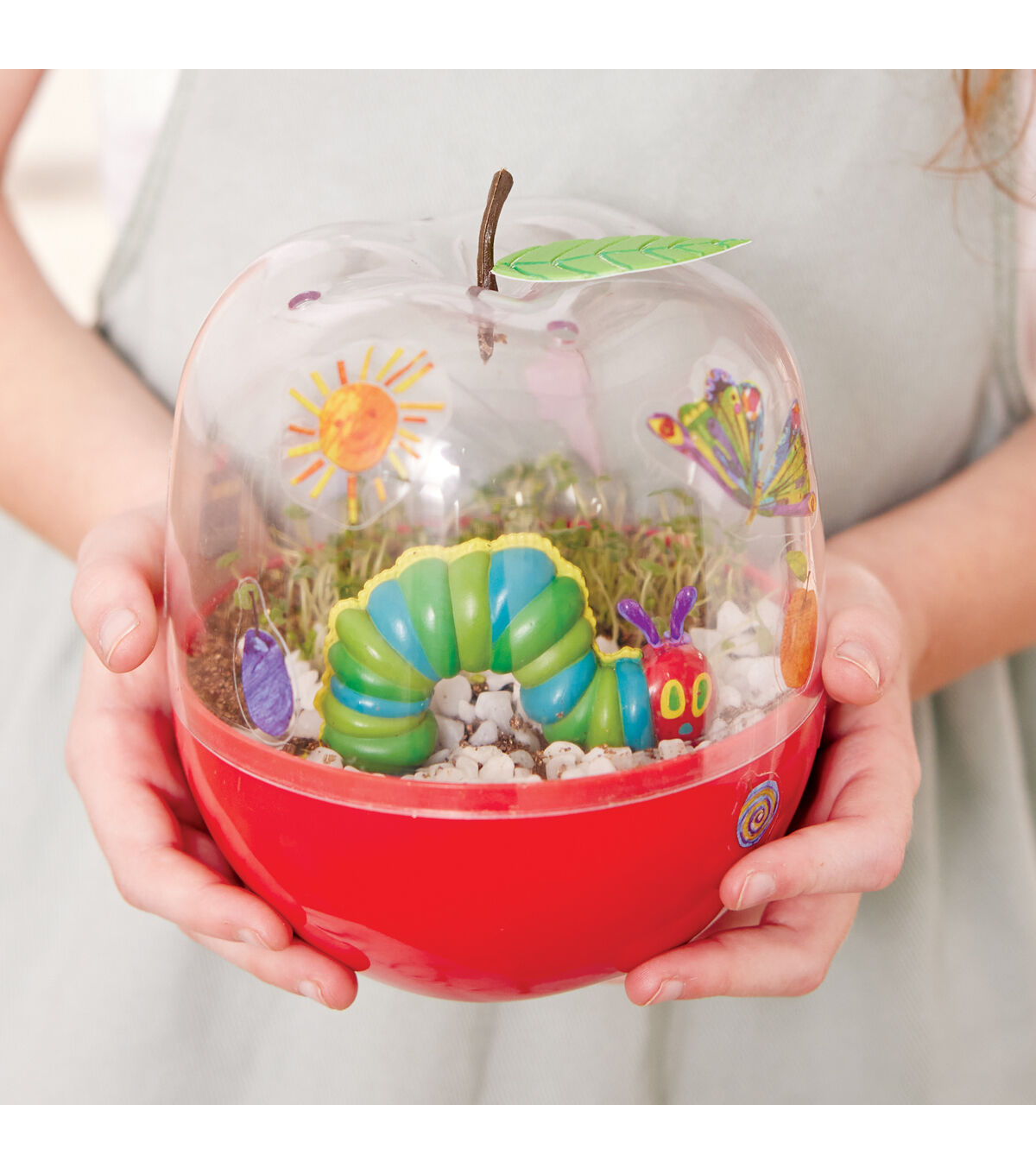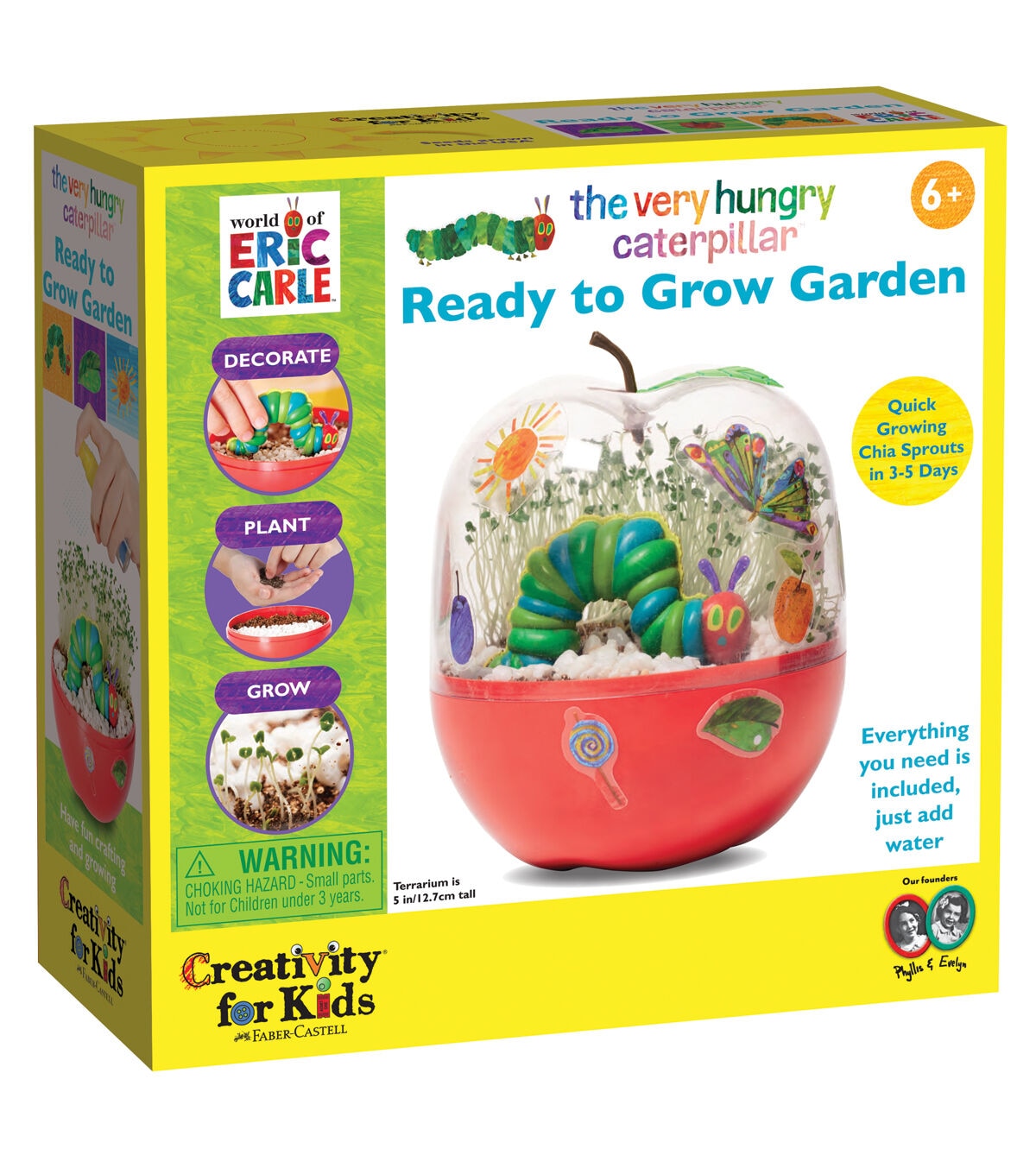 Apple shaped terrarium comes ready to decorate, plant and grow! Build creative confidence and engage with “The Very Hungry Caterpillar” classic story while you nurture your own kids terrarium Kids garden kit comes with a plastic apple terrarium, potting mix, chia seeds, caterpillar figurine, leaf sticker, white river rocks, sticker sheet, spray bottle and instructions Quick grow chia seeds mean a green thumb for everyone! This kids garden includes 2 plant grow cycles of quick grow chia seeds that will sprout within 3 to 5 days of planting Fun STEM activity for kids! Growing your own plant is a great STEM activity to learn about plant life cycles, responsibility, and nurturing World of Eric Carle nurtures a child’s love of literature and learning! Ready to Grow Garden craft allows the classic children’s book to come to life in a colorfully creative craft kit designed to inspire hungry minds Build creative confidence in your child with Creativity for Kids crafts for kids. Since 1976, we have proudly created fun and creative experiences today to nurture children’s confidence for life. “The Very Hungry Caterpillar” Ready to Grow Garden is non-toxic, kid-friendly, and recommended for ages 6+