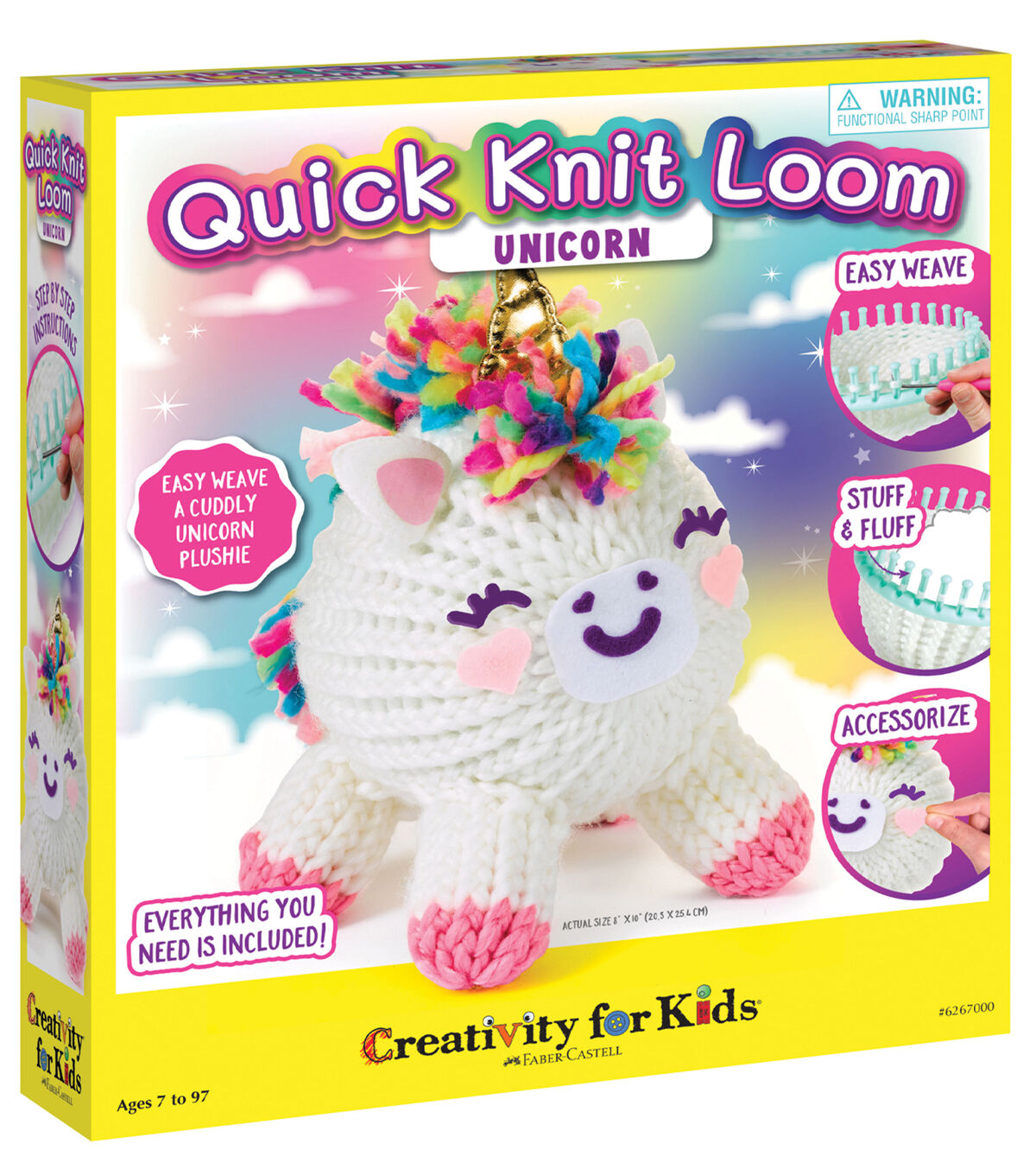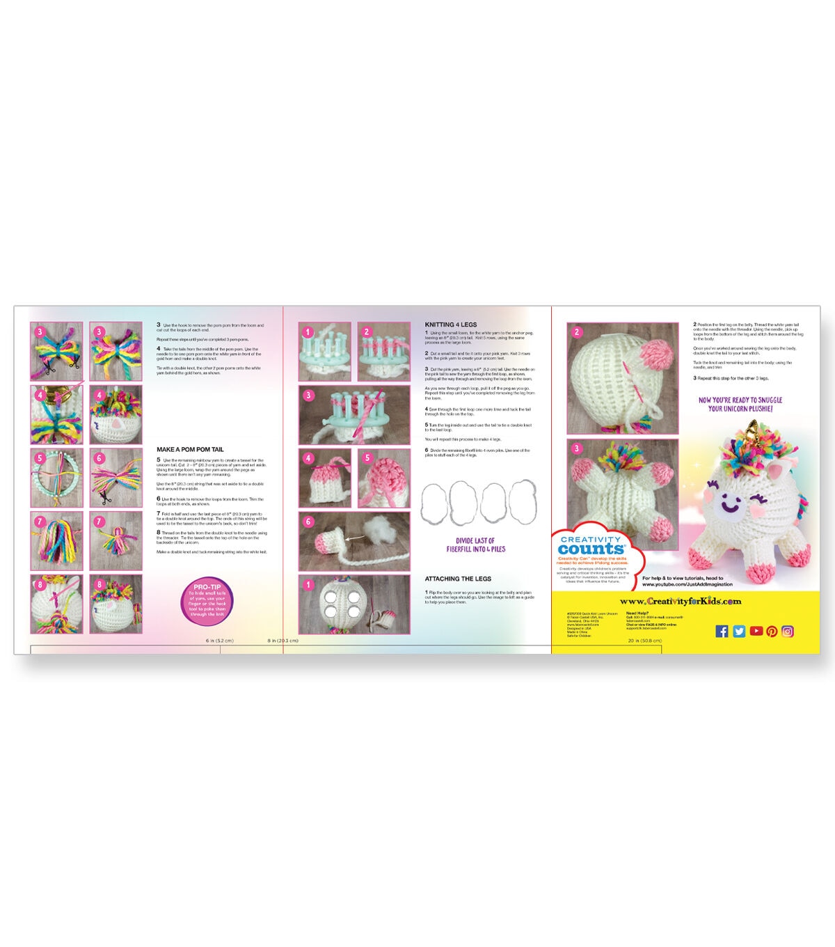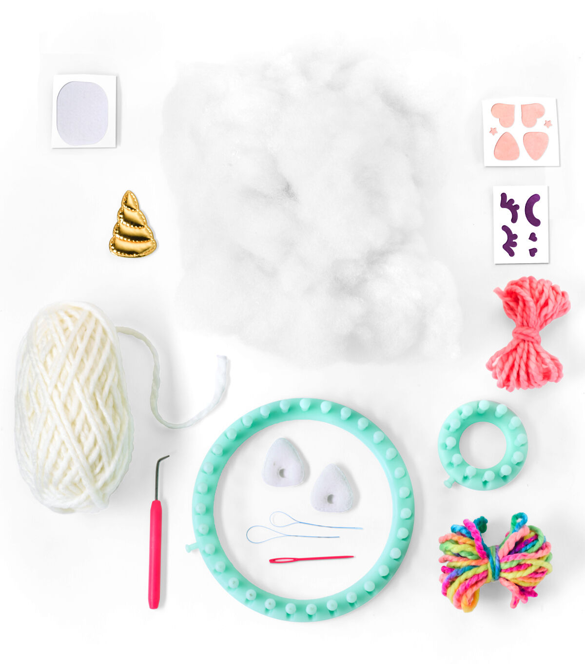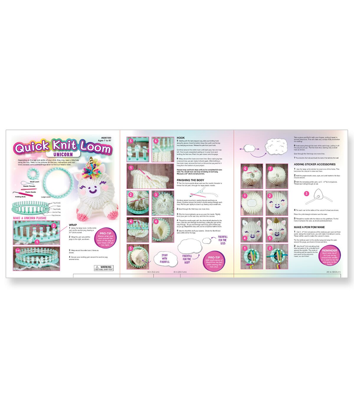 Learn a new craft as you create your own soft and squishy unicorn friend. Everything you need is included. So much easier than knitting or crocheting; simply wind the yarn around the loom pegs, then flip the loops. When you’re finished, use the included components to stuff and accessorize your plush pal. Kit includes 60+ yards of yarn, fiber fluff, soft ears, gold horn, felt accents, large and small looms, hook, plastic needle and step-by-step instructions. High quality loom can be used again and again. Check out our easy to follow videos to learn even more fun projects at www.youtube.com/JustAddImagination.