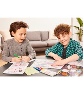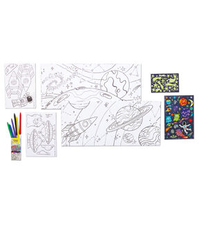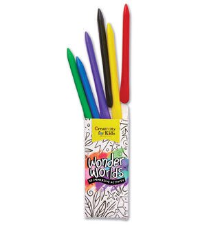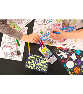 With recycling, sustainability and green practices top of mind, we are proud to introduce Wonder Worlds, our first sustainable craft line! The Wonder Worlds environment is recyclable and created from recycled cardboard and vegetable inks. Color, sticker, build and play with this 3D immersive activity. Includes a 2-sided fold out coloring scene, 3D punch-out sheets (makes 4 space-themed characters), sticker sheet & glow stickers and 6 paper-free triangular dual-tip crayons for thin and broad strokes. Play with one world or combine your worlds for even more fun.