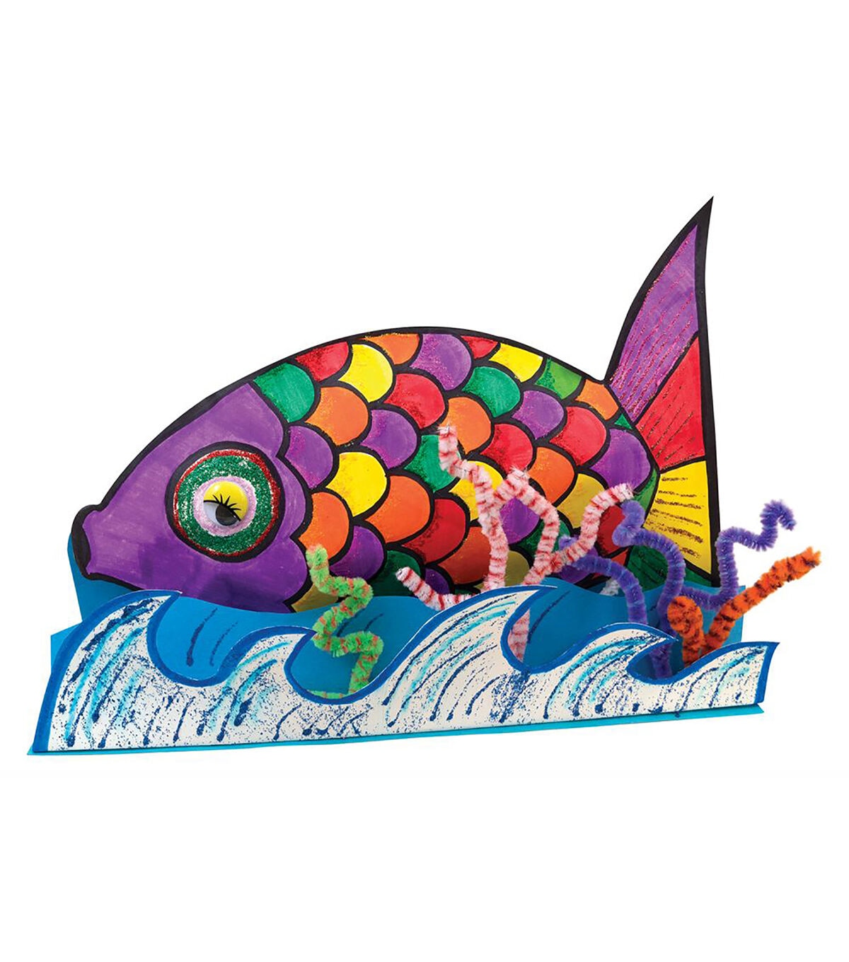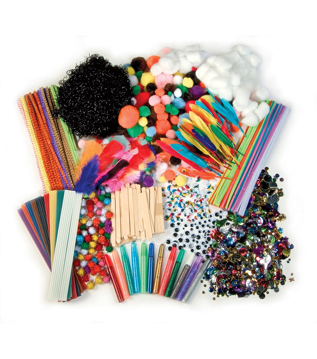This activity box features an extensive assortment of craft products for loads of creativity and fun. Wax Works sticks easily bend into any shape you like. Wiggle eyes move and shake to bring your creations to life. Glitter glue pens dispense nontoxic glue with sparkling accents to create the dazzling effect of glitter without any of the mess. Wooden craft sticks are great for stirring inks and paints, or decorate them to become a part of your creation. Also included are several other craft items for embellish your creations, including chenille stems, pom pons, craft hair, fluffs, feathers and more.
