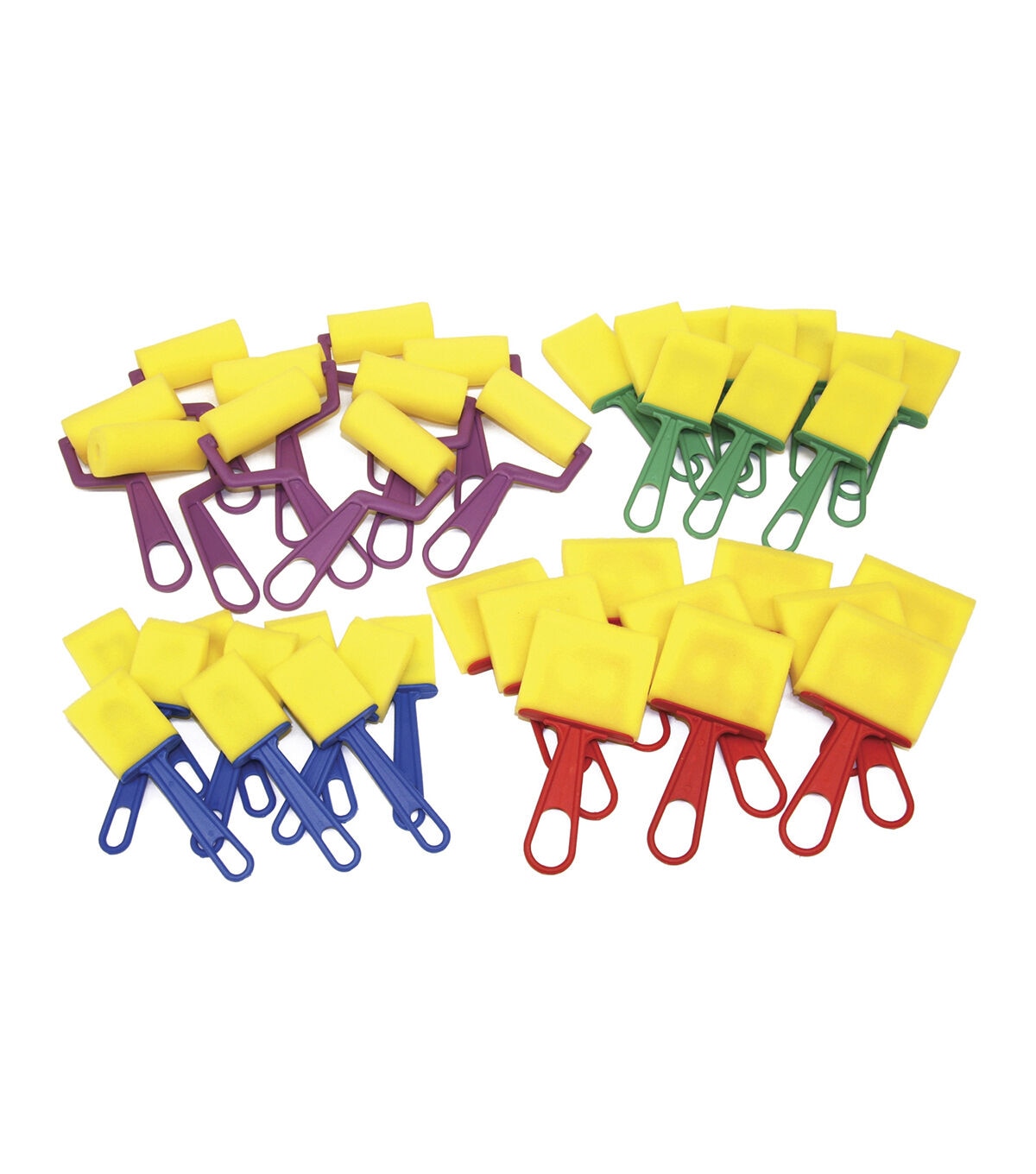The Creativity Street Foam Brush Set contains 40 brushes of different kind that make it ideal for wall painting as well as classroom projects. Featuring in-built loops, the Creativity Street Foam Brushes provide a better grip while painting. These foam paint brushes can be cleaned easily and doesn't require much maintenance. This brush set contains (10) 3" wide foam rollers, (10) 2" wide foam brushes, (10) 1.5" wide foam brushes and (10) 3" wide foam brushes to use during a play date or for a classroom.