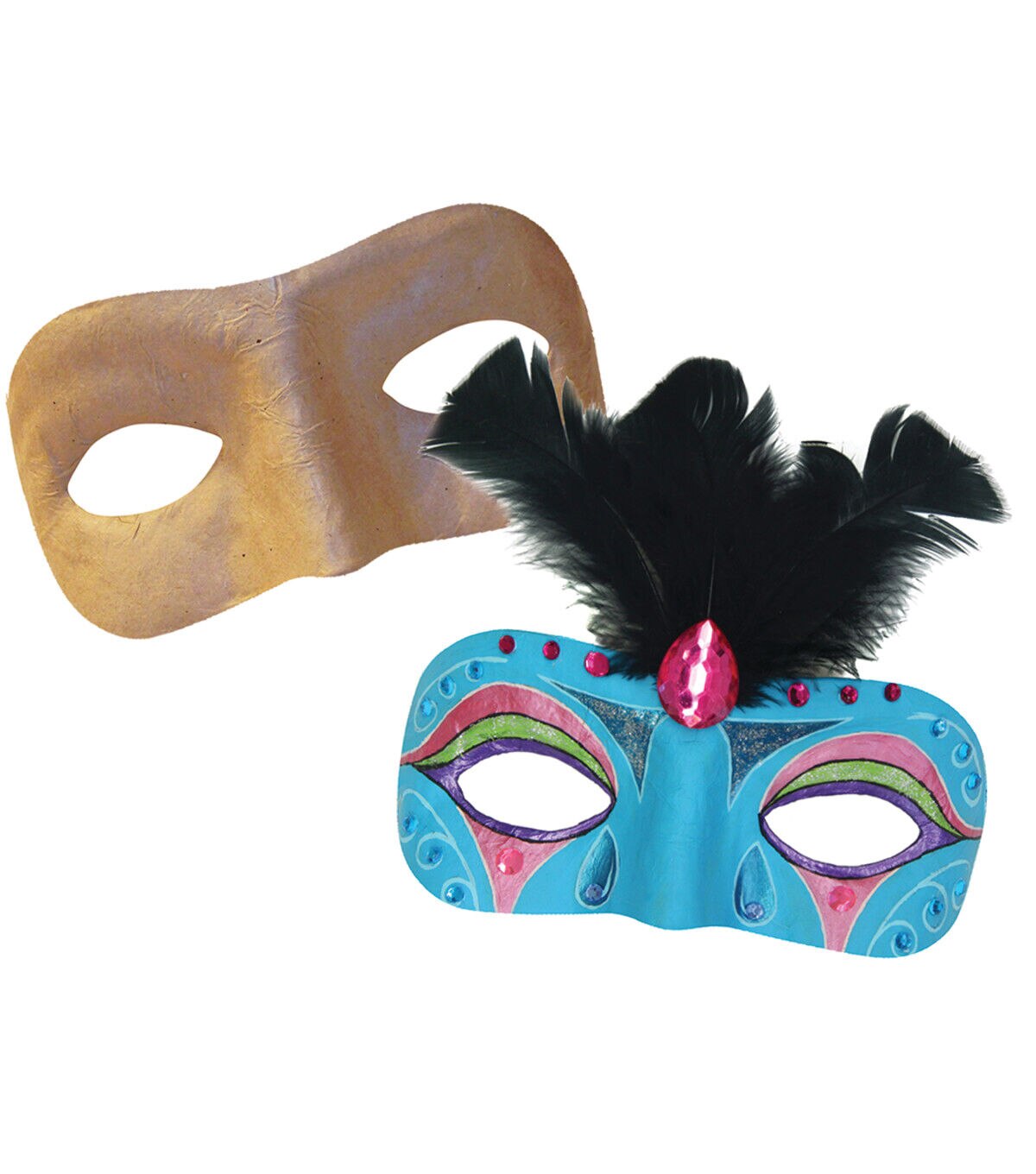 Jump-start mask-making projects, costume design and creative 3D protraiture projects with this pre-made mask! This paper-mache mask is ready to decorate - add acrylic paint, gems, beads, feathers and more.