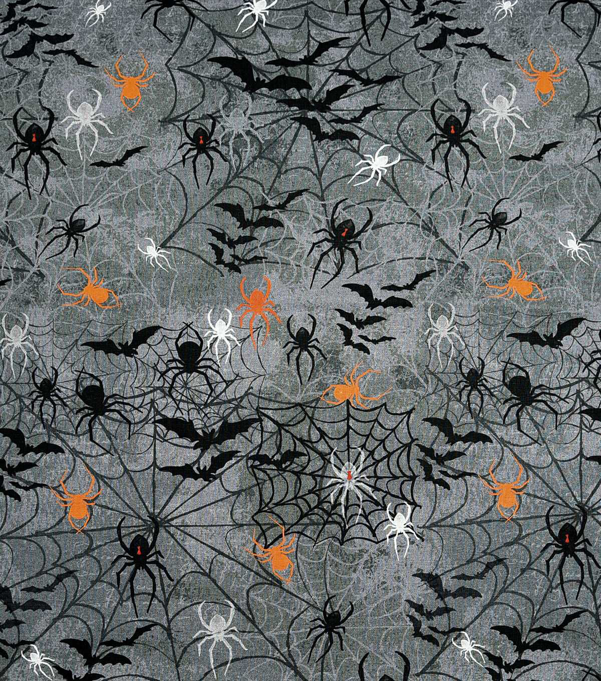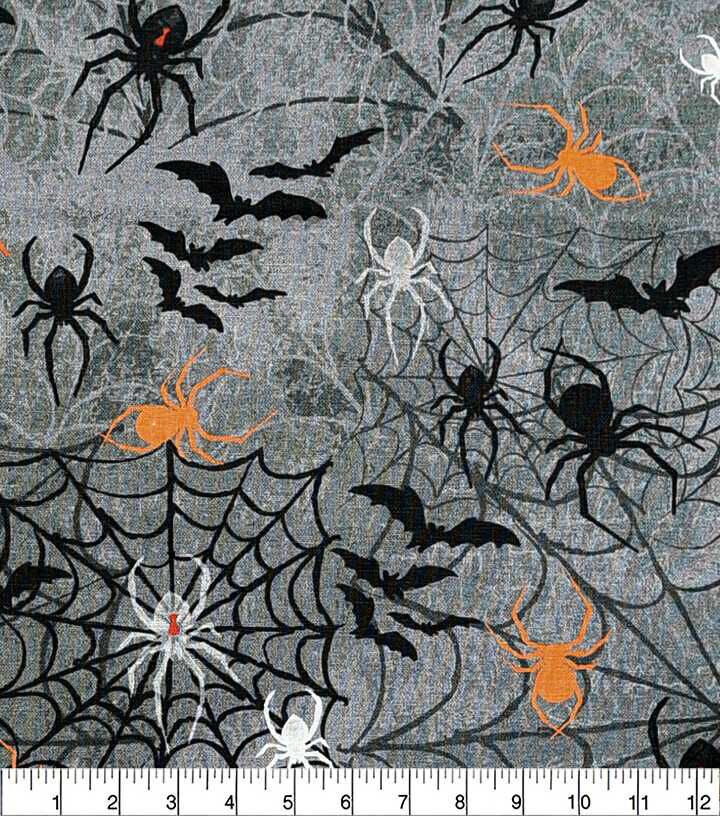 • Creepy Spiders On Webs Orange Black Halloween Cotton Fabric