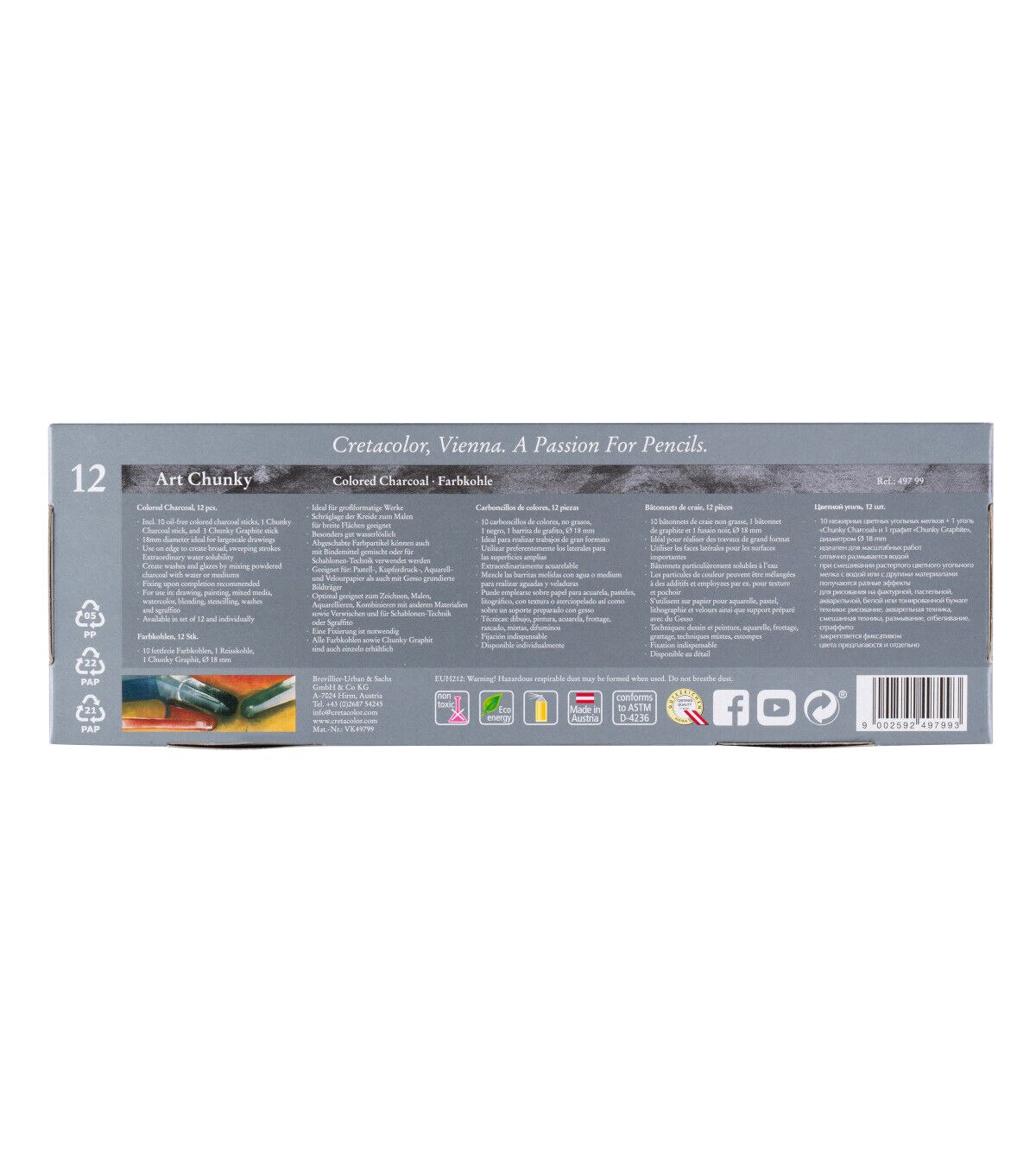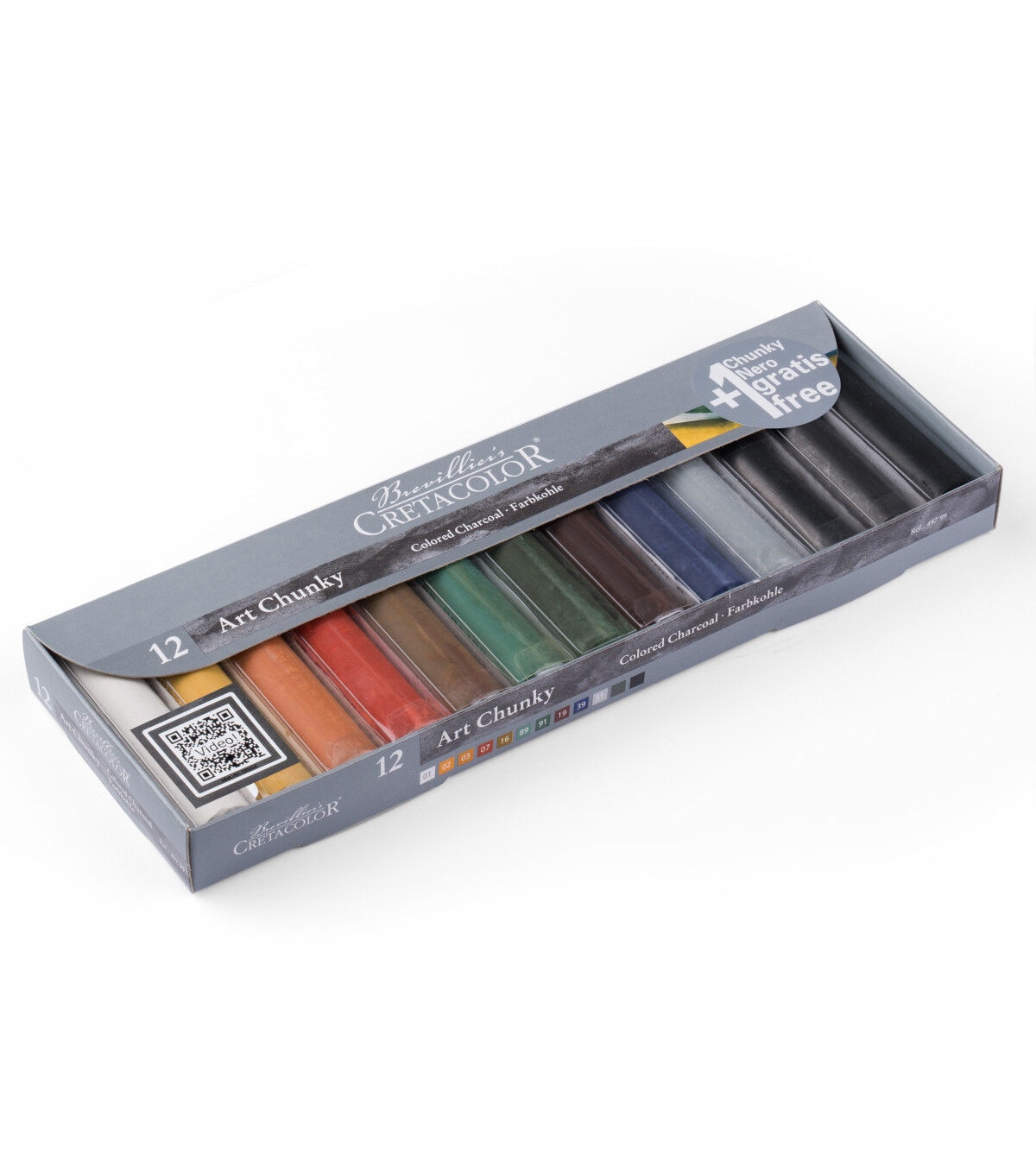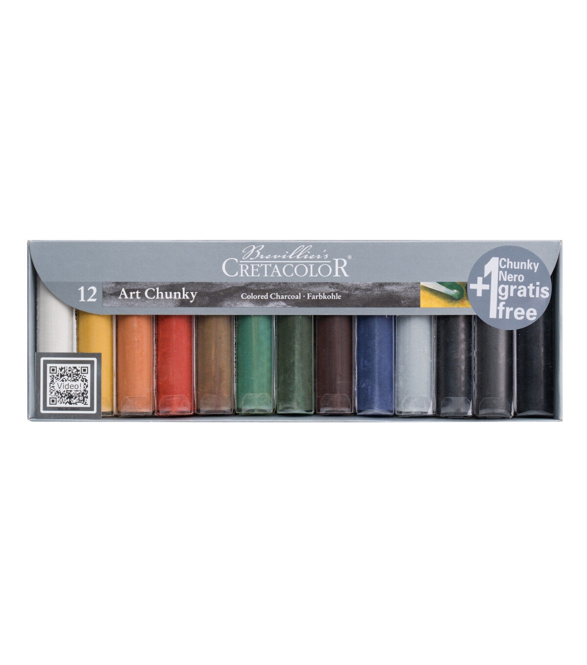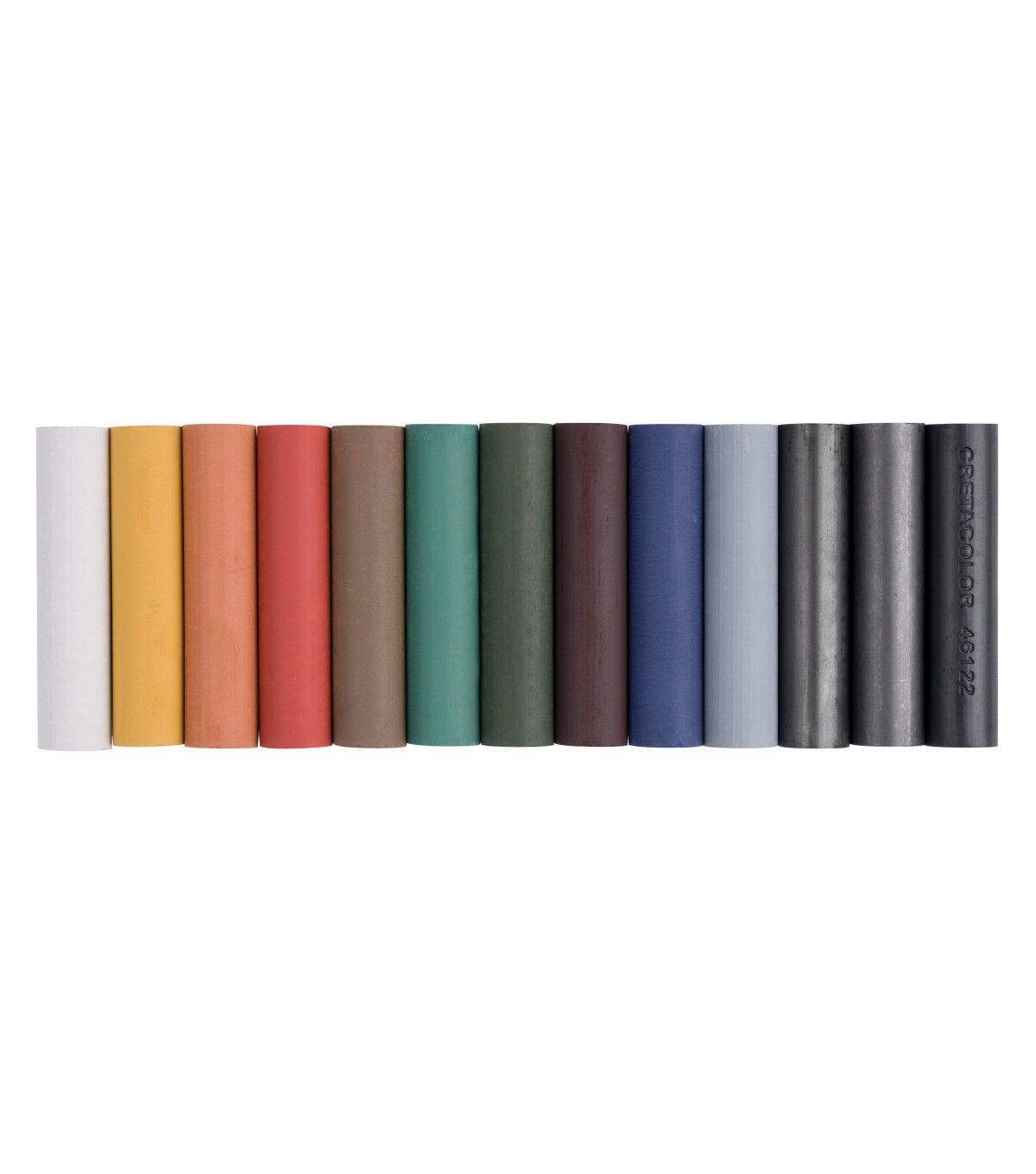 These 3.5" by .75" colored charcoal sticks excel in all drawing techniques and are bound to become an artist favorite. They are ideal for large scale drawings.The set contains the colors White, Light Ochre, Dark Ochre, Sanguine Light, Olive Brown, Green Earth Light, Olive Green Dark, Sepia Dark, Paynes Grey, Silver Grey, Graphite Stick, and a Black Charcoal Stick..