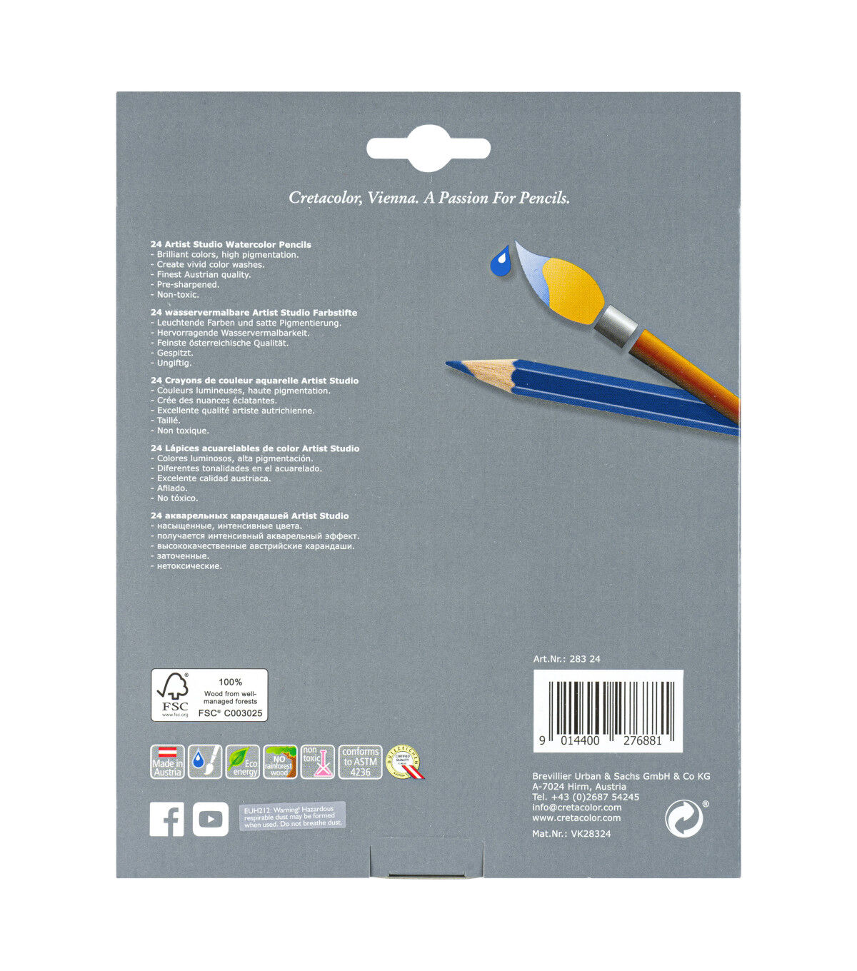 This set of six 5.6mm graphite fine art leads includes one white chalk, one 4B graphite, one black compressed charcoal, one dark brown, one dark sepia and one sanguine lead.These watercolor pencils have a high pigmentation that produces brilliant color. They are capable of creating colorful washes when mixed with water and can be used wet or dry for a variety of effects.
