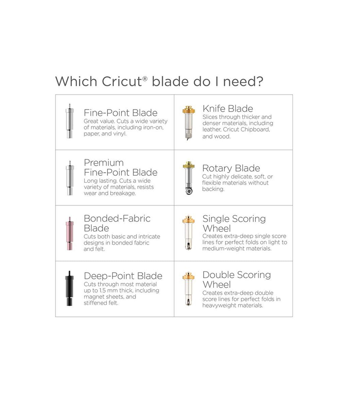 Thicker and heavier materials like chipboard, rubber, poster board, and cardstock are no match for Cricut® Deep-Point Blade + Housing. A steep, 60 degree blade angle (versus the standard 45 degrees) allows you to cut deeper. Project possibilities include chipboard wall calendars, rubber magnets, custom magnets, and so much more! For use with Cricut Maker® and Cricut Explore® family machines.