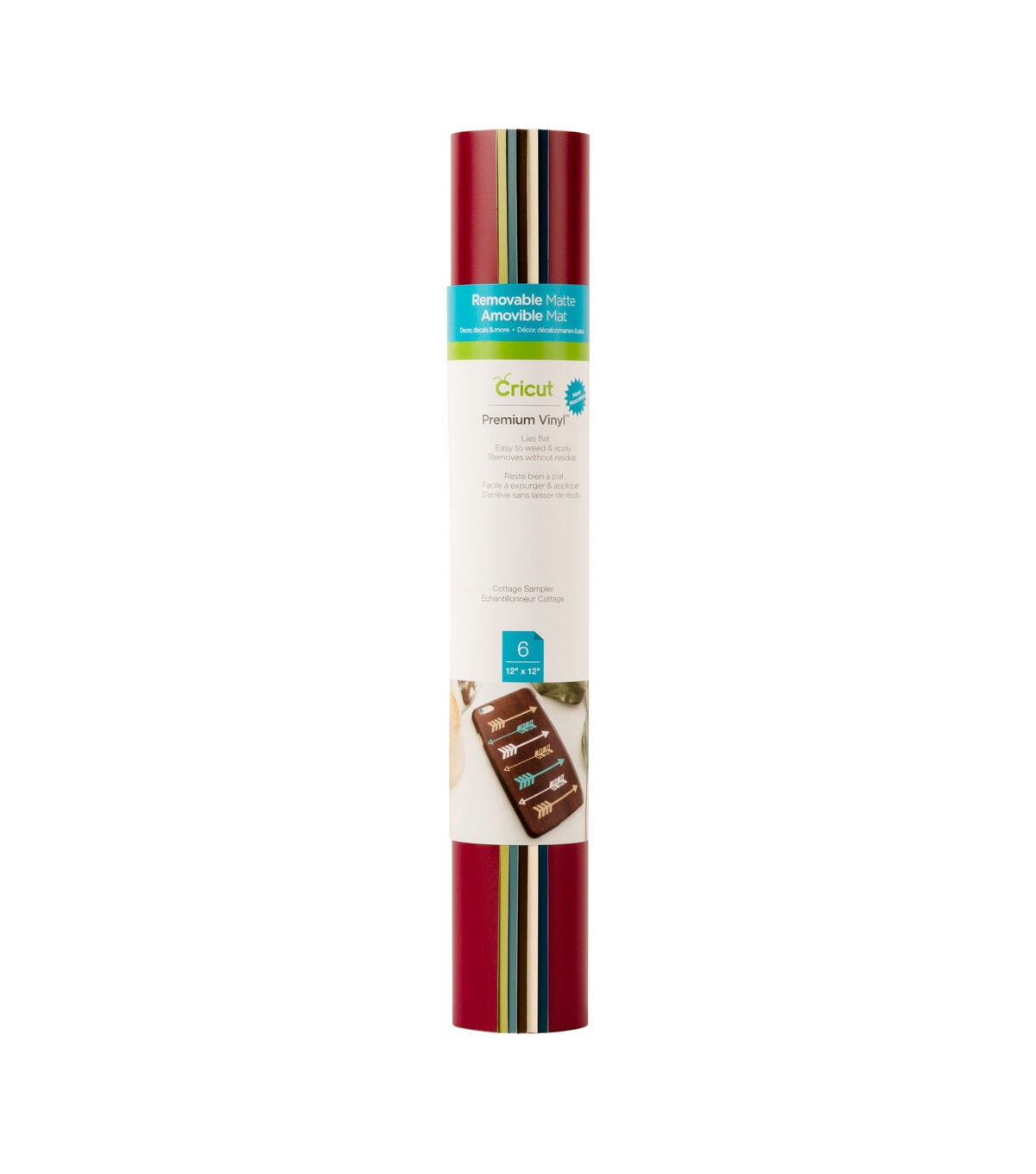 Go quaint and coastal with the lovely collection of colors in this Cricut Premium Vinyl Sampler-Cottage. It lies flat on your cutting mat without tunneling or bubbling, and works with all Cricut cutting machines. Even complex designs effortlessly lift from the carrier sheet for a perfect application. You can apply this premium vinyl to almost any surface. For ultimate flexibility, it stays removable for up to two years without residue.