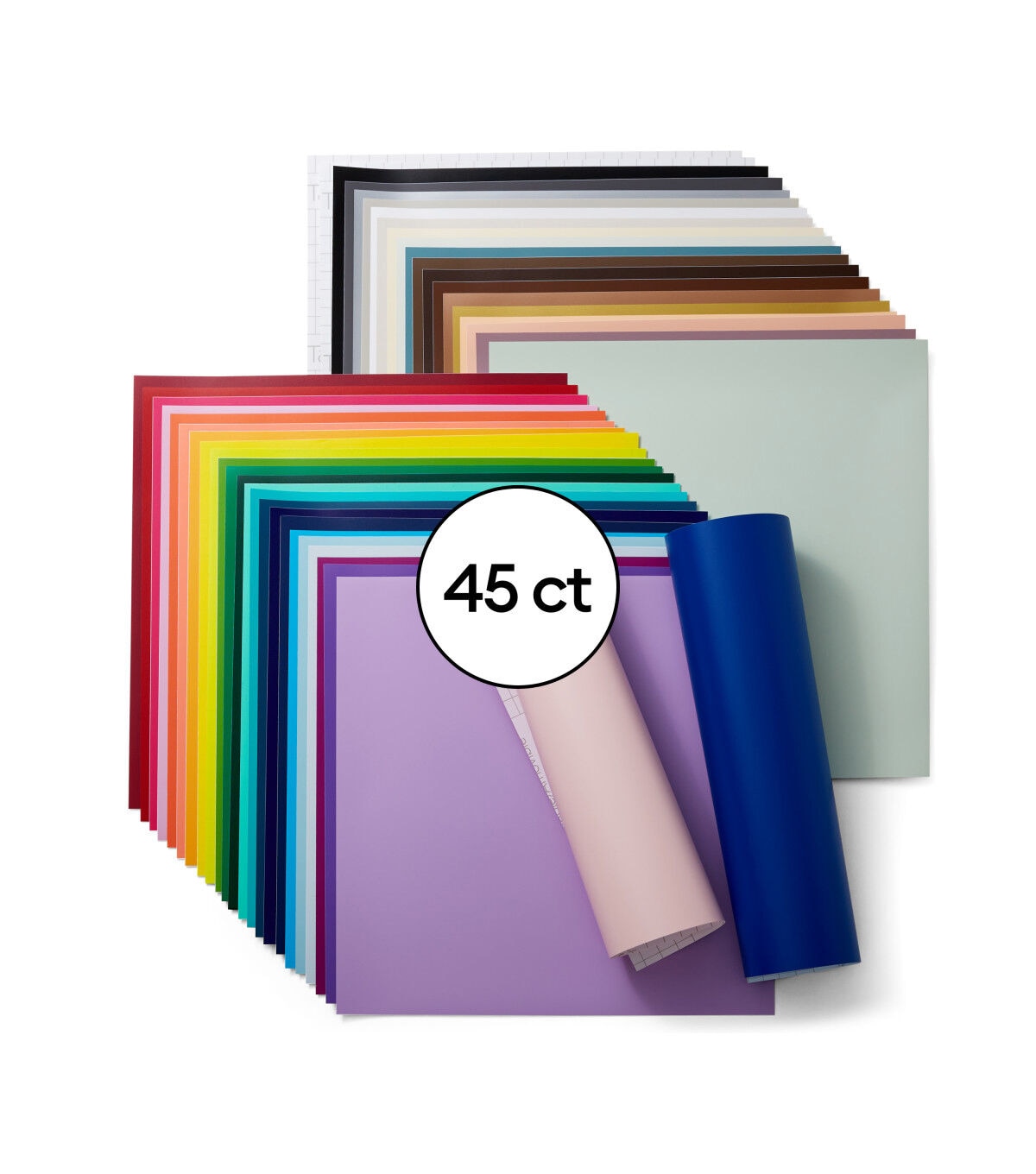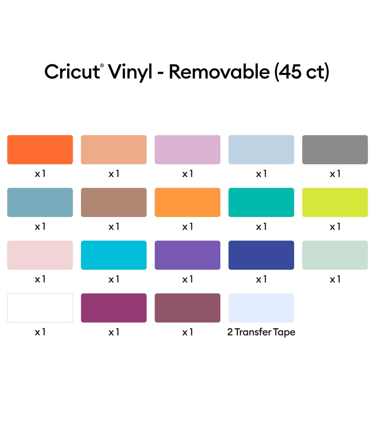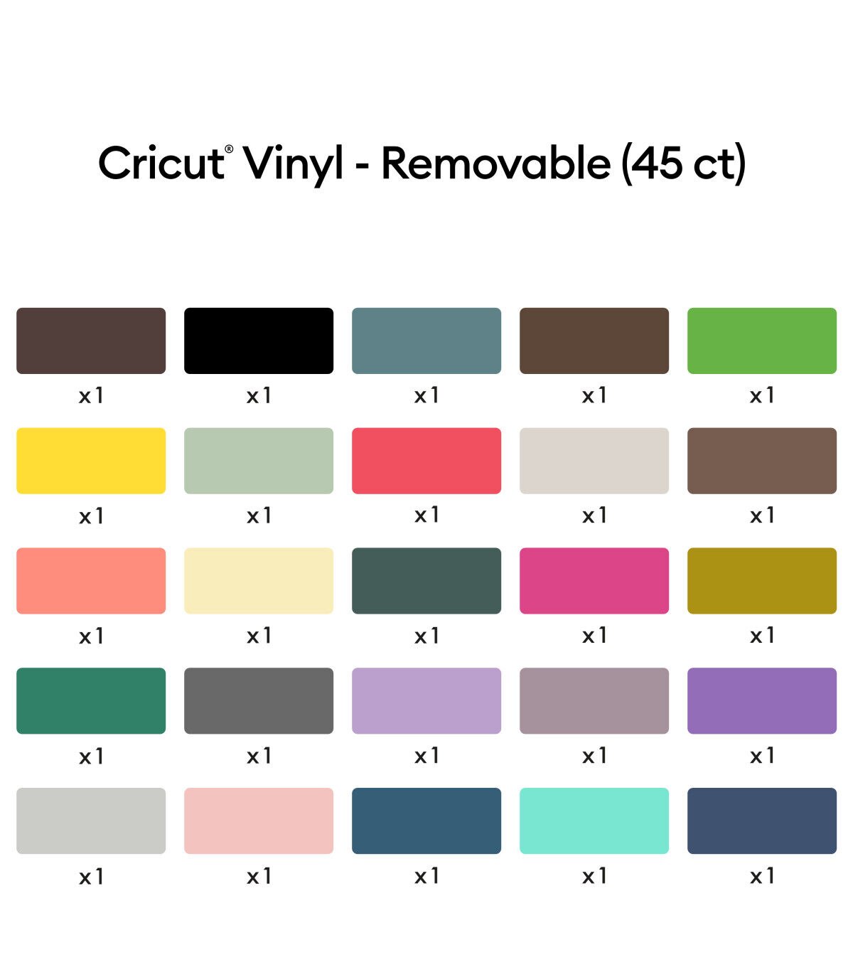 Make & save with all the colors you need with this 45-sheet Cricut Removable Vinyl sampler. It removes without residue so you can enjoy new designs without the commitment. It lies flat on your machine mat — no tunneling or bubbling — so every intricate design effortlessly separates from the carrier sheet for easy application. For use with all Cricut cutting machines.