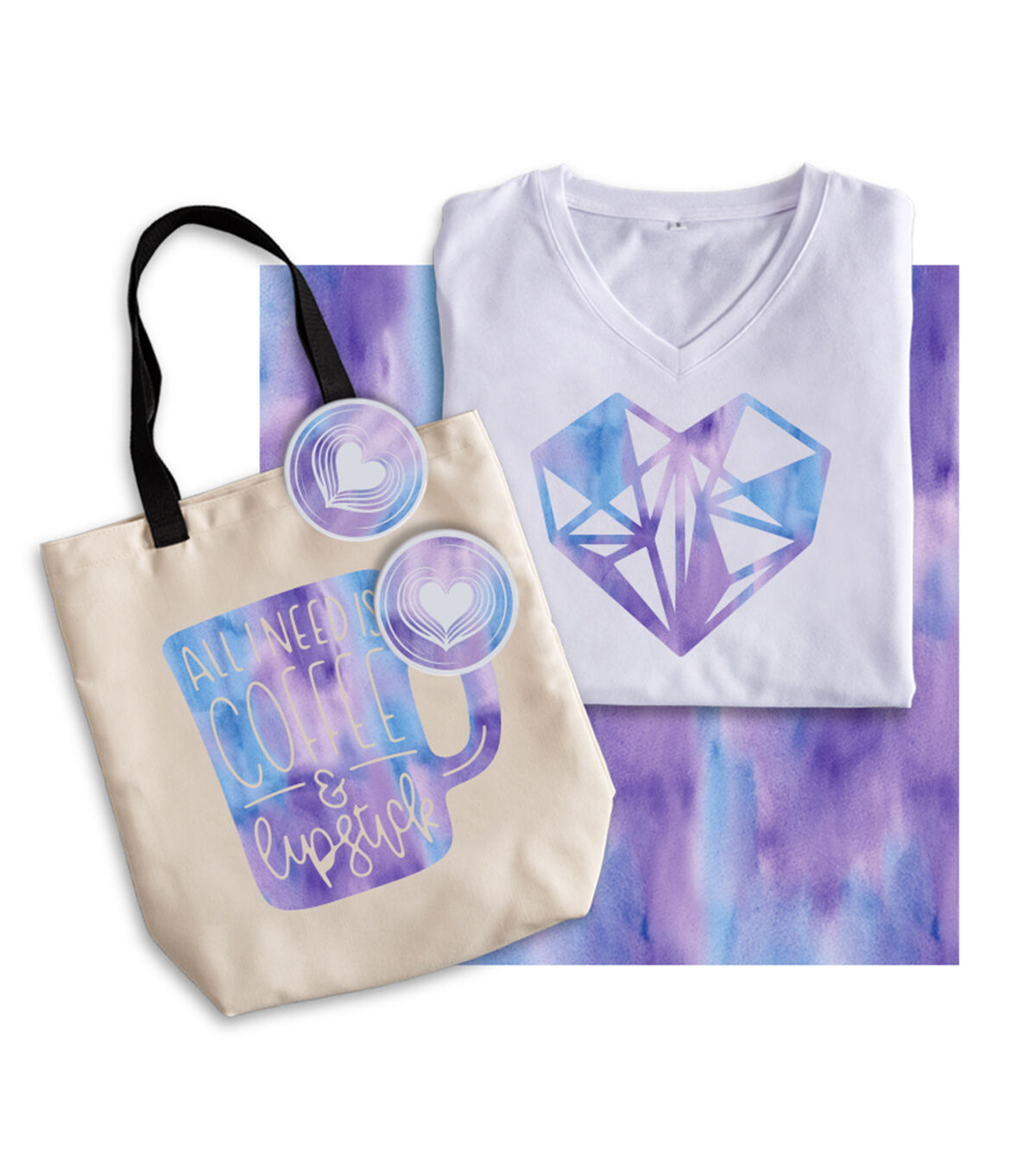 Lose yourself in these soft, inviting prints. Get ready for the next hottest thing in heat transfers! Customize T-shirts, totes, and more with pro-level transfers that last a lifetime. Personalize any compatible Infusible Ink™ blank with a name, logo, inside joke, or favorite quote using your Cricut® cutting machine and these ready-to-cut sheets in complementary patterns. When transferred using high temperatures, these pre-inked sheets blossom into vibrant, vivid hues before your eyes. The end result is vivid, brilliant, seamlessly smooth transfers that are peel-proof, flake-proof, and wash-proof! Combine with complementary Infusible Ink Pens & Markers or solid colors for truly unique creations.