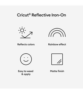 Bring your heat-transfer projects to life with a flash of color. Cricut Reflective Iron-On adds delightful dimension to T-shirts, sweatshirts, and so much more. Enjoy eye-catching shapes, logos, and phrases on your favorite apparel — they're just a cut and press away. Simply cut custom designs with your Cricut cutting machine, and easily transfer them to a wide range of projects. For use with all Cricut cutting machines. For best results, transfer using Cricut EasyPress. Care Instructions: Apply to pre-washed and fully dried materials only. Allow 24 hours after application before washing. Machine wash cold inside out, tumble dry low. Do not bleach. If you need to iron, only iron on the backside of the garment.