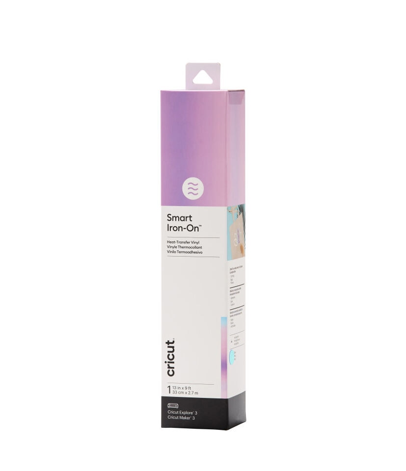 Give your apparel and home decor a bit of groovy holographic shine with Smart Iron-On Holographic. This nifty material works without a cutting mat, so you can just load and go. Adding a touch of shine to tees, totes, and more has never been easier. Smart Iron-On works on a wide variety of materials (even wood!). For use with Cricut Explore 3 and Cricut Maker 3. For effortless application, use Cricut EasyPress. Or apply with household iron.