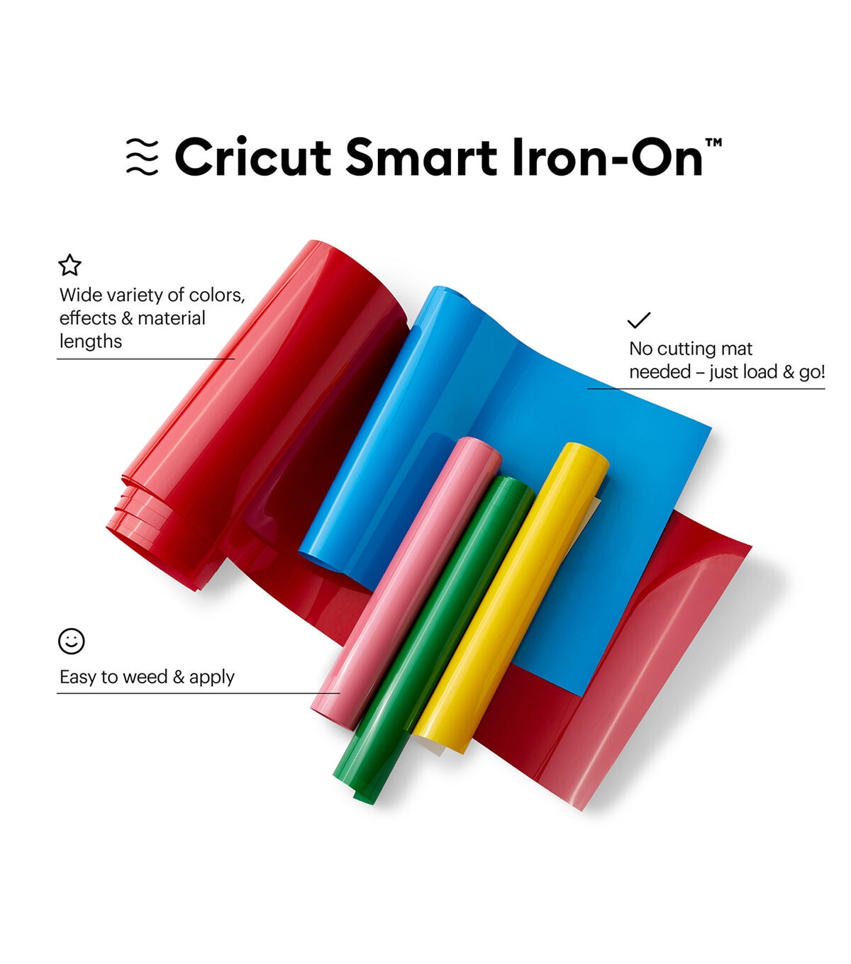 With Smart Iron-On, you'll be wearing your creativity on your sleeve, your pant leg, or your pocket every single day. This nifty material works without a cutting mat just load and go. With 9 ft of material, adding a personalized touch to jerseys for the whole team in one cutting project has never been easier. Smart Iron-On outlasts 50+ washes* and works on a wide variety of materials (even wood!). For use with Cricut Explore 3 and Cricut Maker 3. For effortless application, use Cricut EasyPress. Or apply with household iron.