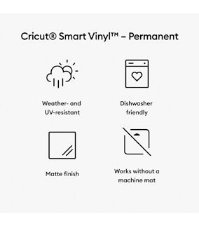 Personalize a little or a lot. Make more in less time with Smart Vinyl. This clever crafting material works without a machine mat – just load and go. Now it's no biggie to create a label on the fly or a birthday banner with big impact. Batch out decals for custom water bottles or decorate an entire wall. This vinyl is weather-resistant so your creations will last even in the great outdoors. Whether you're all about tiny touches or shouting from the rooftops, you've got this. For use with Cricut Venture. *Not intended for food or mouth contact. Carefully follow instructions at cricut.com/help/dishwasher-friendly