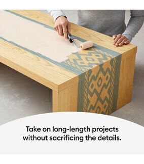Go long, go wide, go tall! Stencil an entire accent wall or DIY kitchen backsplash in no time with Cricut Smart Stencil. No machine mat needed, just load into your compatible Cricut cutting machine for precise cuts, crisp paint lines, and stunning results from floor to ceiling. With an adhesive backing for easy application, this stencil film is durable yet removes without residue. It works with numerous paint applications and is versatile enough for both curved and flat surfaces including walls, wood, glass, canvas, and beyond. A single stencil cuts up to 5 ft (1.5 m). For use with Cricut Venture.