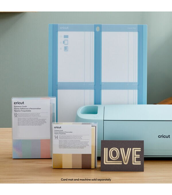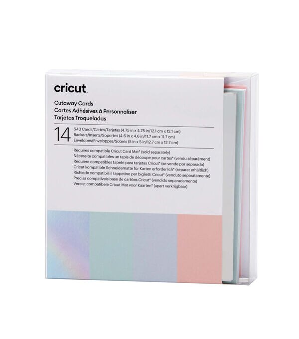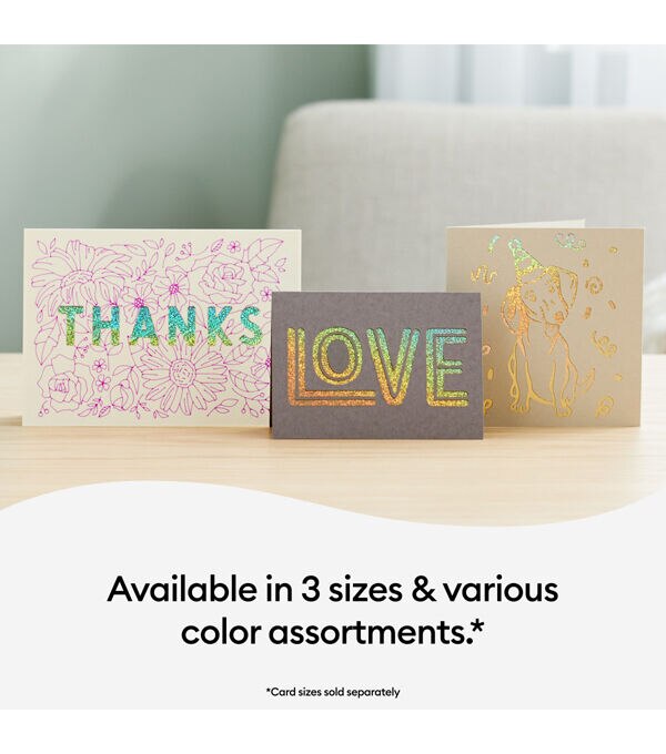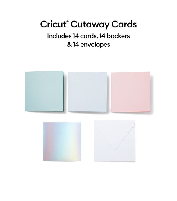 Create custom cards every time with Cutaway Cards for your Cricut cutting machine. Adhere a colorful backer, cut your personalized message in any design or font, weed away cutouts, and you’re set –– custom cards ready for any occasion. This pack includes envelopes and comes in a variety of colors, ready to send. Requires compatible Cricut Card Mat (sold separately). Available in a variety of sizes and colorways.