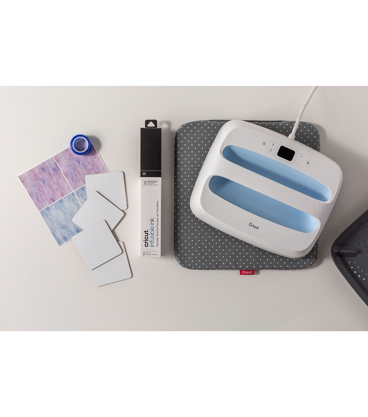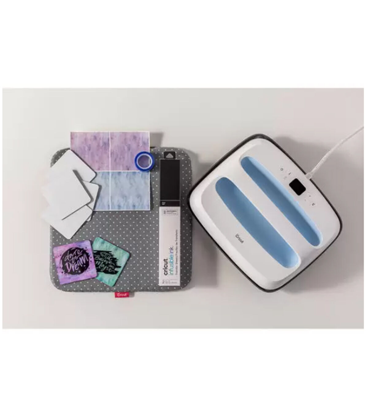 It's good to be blue with this bundle, perfectly curated for the Infusible Ink and iron-on enthusiast. Get the easiest-to-use DIY heat press plus a Cricut EasyPress Mat, and everything you need to get started with Infusible Ink. Now with adjustable heat up to 400 Fareinheit(205 C), Cricut EasyPress 2 is your no-stress heat press. Combining the speed of a heat press and the convenience of an iron, Cricut EasyPress 2 gives you fast, effortless results that really last, even after repeated washes. Eliminate guesswork with rigorously tested time and temperature settings for every project, apply heat, and when the beep sounds, you're done! Helpful safety features include an insulated Safety Base and auto-shutoff feature. Cricut EasyPress 2 is lightweight, portable, easy to store, and compatible with most major brands of heat-transfer vinyl and all Infusible Ink products. And of course, it's a perfect complement to Cricut cutting machines