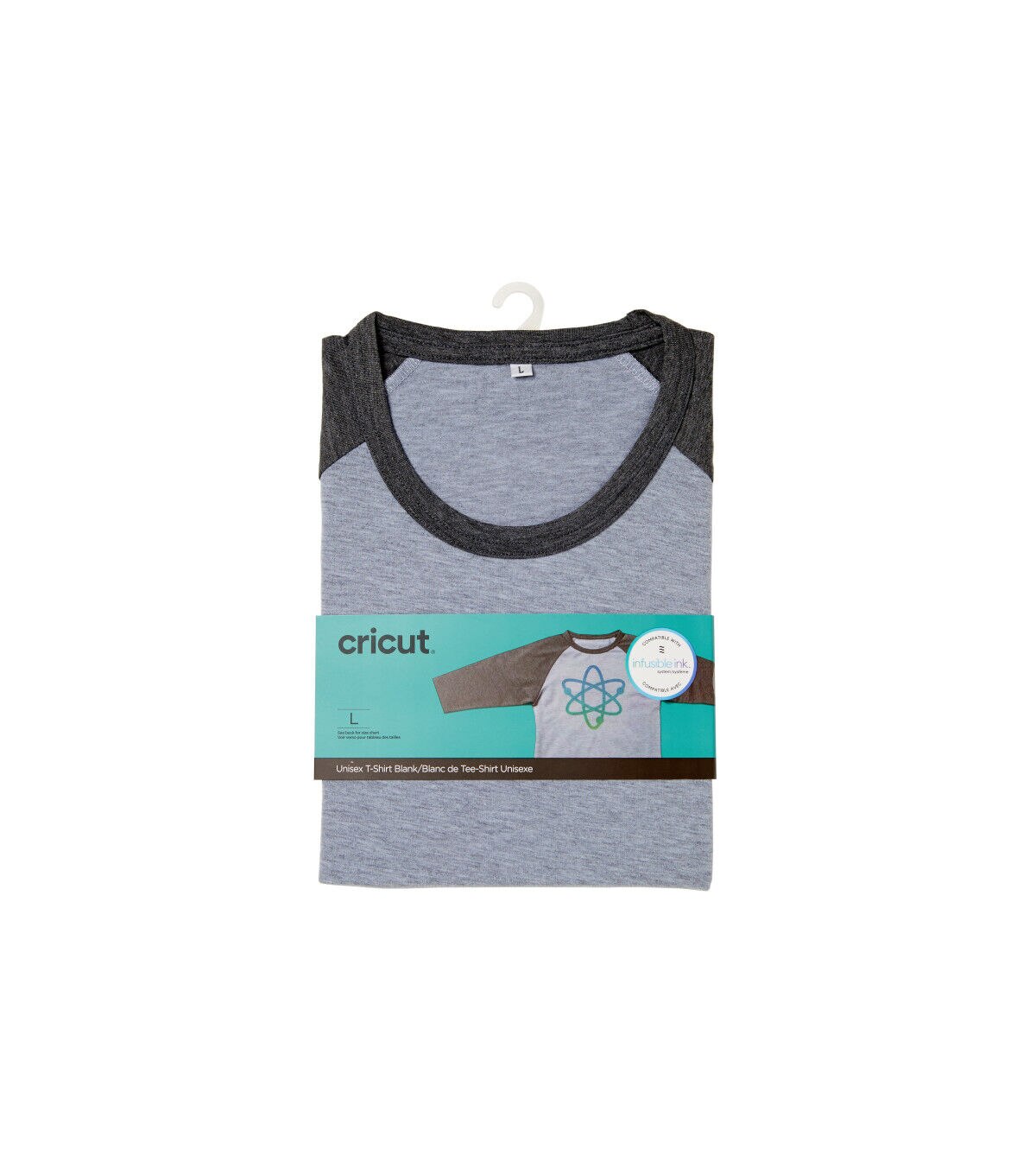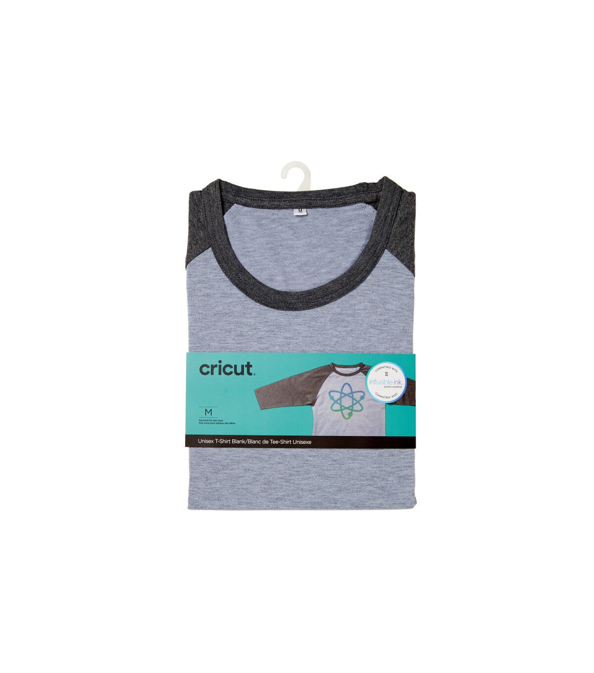 Optimized for Infusible Ink transfers. This exceptionally soft, two-toned baseball-style T-shirt with 3/4 sleeves is made for both comfort and creativity. With colored sleeves and collar and a Light Gray body, this compatible Infusible Ink™ blank is ready for a vibrant, pro-quality heat transfer that lasts a lifetime! Cricut Infusible Ink blanks are optimized for superior results.* Unlike iron-on heat transfers or heat-transfer vinyl that adheres to your project's surface, Infusible Ink design s become one with your compatible material, resulting in rich, full-color transfers without edges or seams. Get a smooth, durable, premium finish that's always flake-proof, peel-proof, and wash-proof. Personalize and customize it with a team name, logo, inspirational phrase, or whatever speaks to you. This is DIY done right. Care Instructions Machine wash cold. Do not bleach. Tumble dry low. Iron if needed (medium heat, no steam). Do not dry clean . How it works: 1. Choose your materials. Select Infusible Ink Transfer Sheets or Infusible Ink Pens & Markers and a compatible Cricut blank. 2. Make your design . Cut Infusible Ink Transfer Sheets or draw with Infusible Ink Pens & Markers** using laser copy paper. 3. Apply heat. Transfer design with Cricut EasyPress or heat press. *Can I use generic blanks for my Infusible Ink projects? We took incredible measures perfecting our formula, ensuring that Cricut blanks give you the results we promise with Infusible Ink: vivid, vibrant, seamlessly smooth, and truly permanent heat transfers. If you use blanks that do not bear the Infusible Ink compatibility badge, here’s what you may notice: Less vibrancy and sharpness. Incompatible blanks will not give you the vivid and vibrant colors you should expect from Infusible Ink products. Decreased colorfastness/fading. Infusible Ink design s that get transferred to generic base materials will quickly fade and dull with each wash and/or over time. Imperfections. Incompatible blanks are likely to pill, dimple, and pucker, causing transfers with undesirable imperfections. **Graphics created with Infusible Ink Pens & Markers require Heat Resistant Tape.