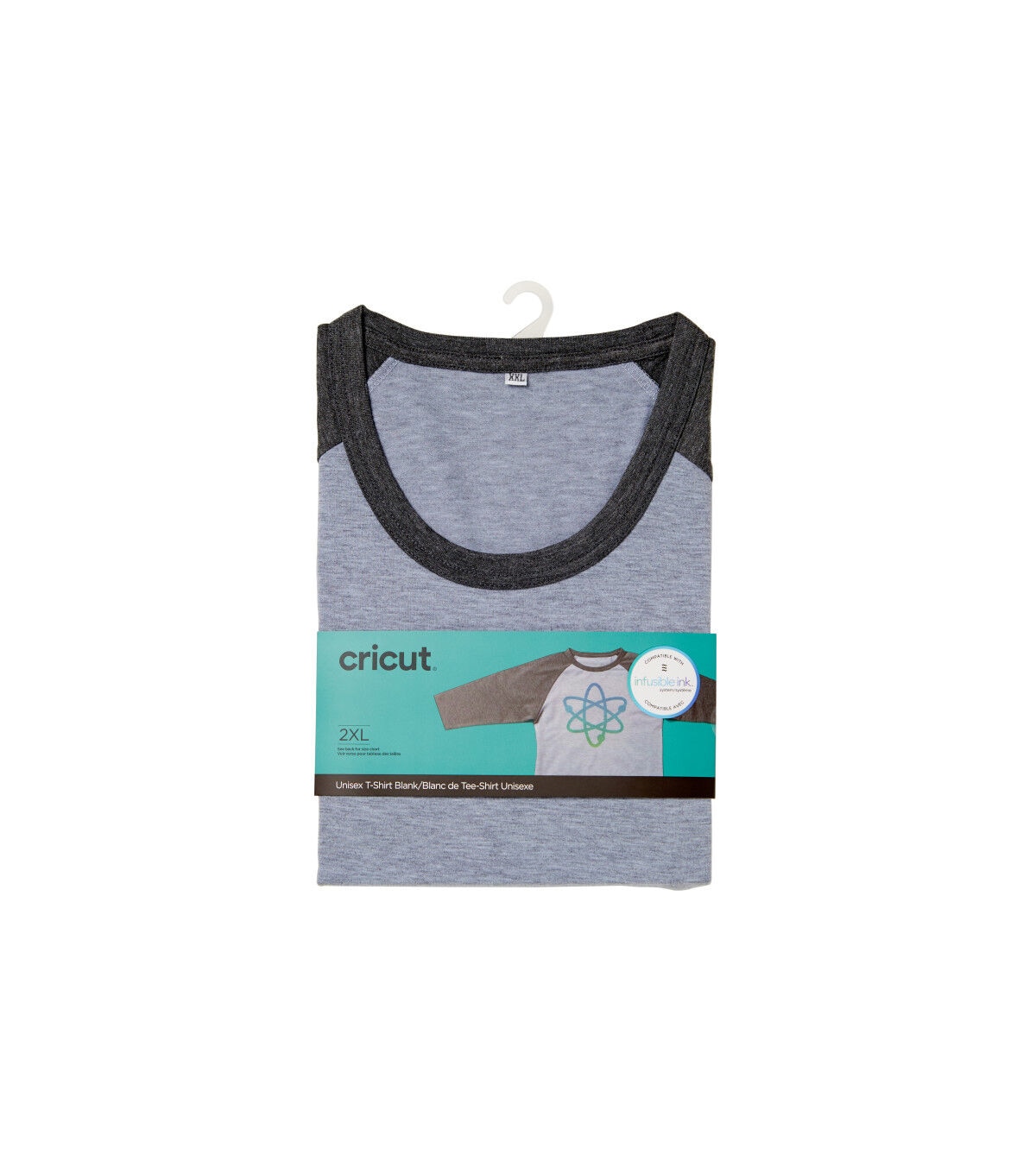 Optimized for Infusible Ink transfers. This exceptionally soft, two-toned baseball-style T-shirt with 3/4 sleeves is made for both comfort and creativity. With colored sleeves and collar and a Light Gray body, this compatible Infusible Ink™ blank is ready for a vibrant, pro-quality heat transfer that lasts a lifetime! Cricut Infusible Ink blanks are optimized for superior results.* Unlike iron-on heat transfers or heat-transfer vinyl that adheres to your project's surface, Infusible Ink design s become one with your compatible material, resulting in rich, full-color transfers without edges or seams. Get a smooth, durable, premium finish that's always flake-proof, peel-proof, and wash-proof. Personalize and customize it with a team name, logo, inspirational phrase, or whatever speaks to you. This is DIY done right. Care Instructions Machine wash cold. Do not bleach. Tumble dry low. Iron if needed (medium heat, no steam). Do not dry clean . How it works: 1. Choose your materials. Select Infusible Ink Transfer Sheets or Infusible Ink Pens & Markers and a compatible Cricut blank. 2. Make your design . Cut Infusible Ink Transfer Sheets or draw with Infusible Ink Pens & Markers** using laser copy paper. 3. Apply heat. Transfer design with Cricut EasyPress or heat press. *Can I use generic blanks for my Infusible Ink projects? We took incredible measures perfecting our formula, ensuring that Cricut blanks give you the results we promise with Infusible Ink: vivid, vibrant, seamlessly smooth, and truly permanent heat transfers. If you use blanks that do not bear the Infusible Ink compatibility badge, here’s what you may notice: Less vibrancy and sharpness. Incompatible blanks will not give you the vivid and vibrant colors you should expect from Infusible Ink products. Decreased colorfastness/fading. Infusible Ink design s that get transferred to generic base materials will quickly fade and dull with each wash and/or over time. Imperfections. Incompatible blanks are likely to pill, dimple, and pucker, causing transfers with undesirable imperfections. **Graphics created with Infusible Ink Pens & Markers require Heat Resistant Tape.