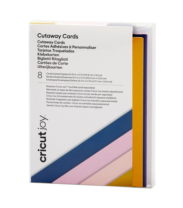 Create customizable cards every time with Cutaway Cards for your Cricut Joy cutting machine. Adhere a colorful backer, cut your personalized message in any design or font, weed away cutouts, and you’re set –– custom cards ready for any occasion. This pack includes envelopes and comes in a variety of colors, ready to send. For use with Cricut Joy. Requires Cricut Joy Card Mat (sold separately).