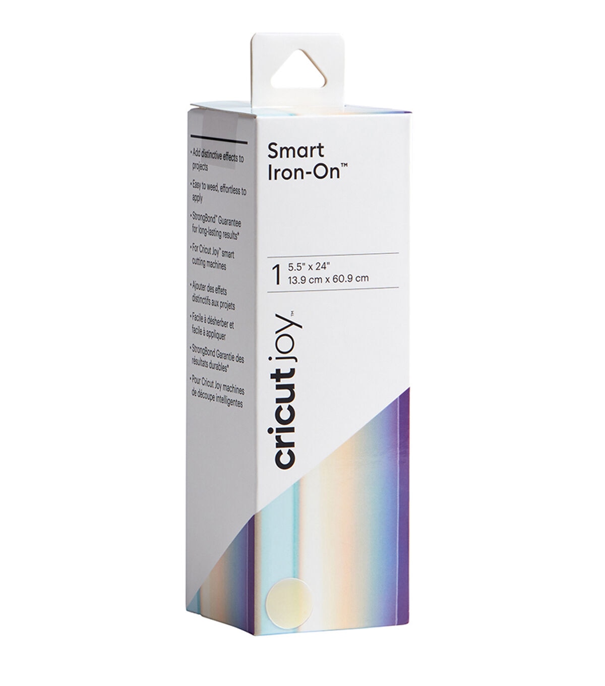 Give your apparel and home decor a bit of groovy holographic shine with Smart Iron-On™ Holographic. This nifty material works without a cutting mat, so you can just load and go. So adding a touch of you to a T-shirt, jean jacket, or backpack is smooth sailing. Smart Iron-On works on a wide variety of materials (even wood!). For use with Cricut Joy™ only. For effortless application, use Cricut EasyPress®. Or apply with household iron. Care Instructions: Allow 24 hours after application before washing. Wash and tumble dry inside out. Do not bleach. If you need to iron, only iron on the backside of the garment.