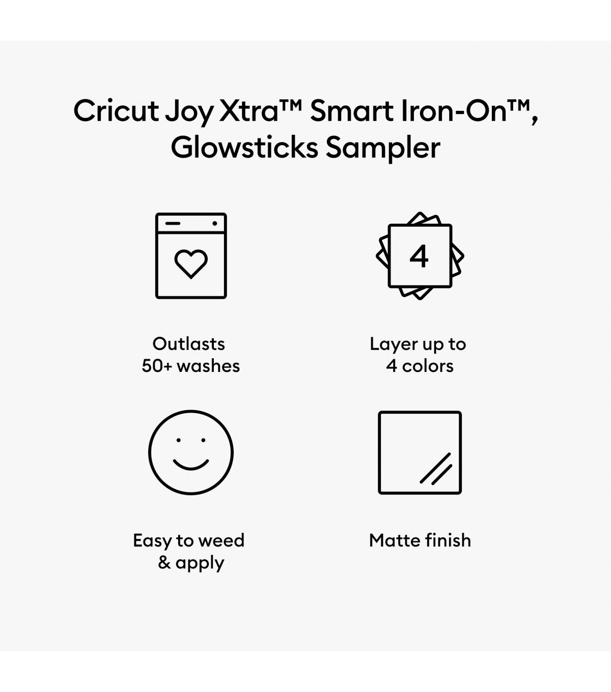 With Smart Iron-On, you'll be wearing your creativity on your sleeve, your pant leg, or your pocket every single day. This nifty material works without a cutting mat, so you can just load and go. So adding a touch of you to a T-shirt, jean jacket, or backpack is smooth sailing. Smart Iron-On outlasts 50+ washes* and works on a wide variety of materials (even wood!). For use with Cricut Joy Xtra. For effortless application, use Cricut EasyPress®.