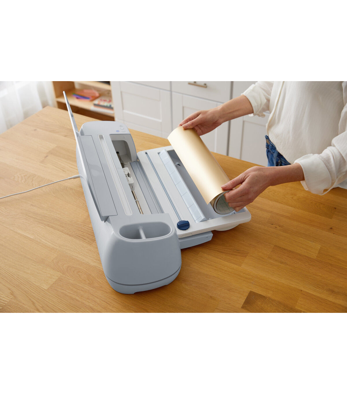 This handy accessory for Cricut Explore 3 and Cricut Maker 3 keeps Smart Materials organized and aligned for clean, precise cuts. Cricut Roll Holder secures and guides rolls of Smart Materials into your cutting machine for cutting projects without a mat, just load & go. It attaches to your machine in seconds, is compatible with rolls of Cricut Smart Materials from 4-75 ft (3-22.8 m), and includes a built-in trimmer for straight edges from beginning to end. For Cricut Explore 3 and Cricut Maker 3.