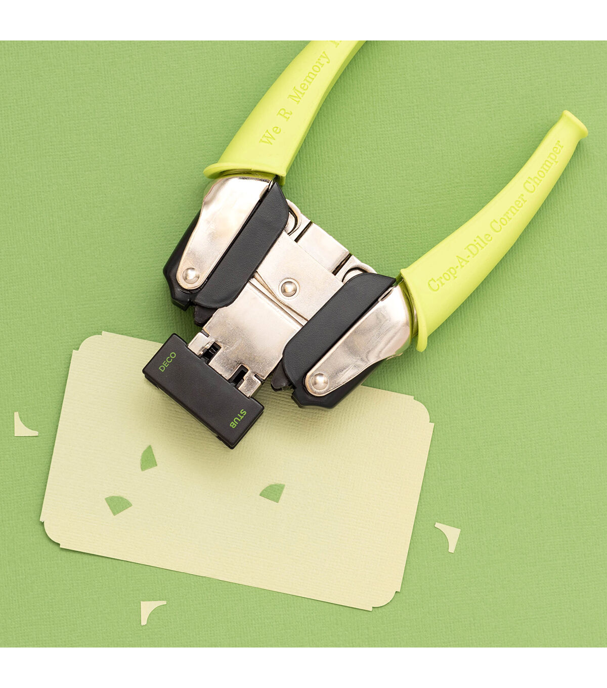 Get creative with your corners and use the Retro Corner Chomper by We R Memory Keepers! This powerful tool is great for adding that extra bit of detail to your projects. Chomp down on paper, cardstock, chipboard, leather, plastic, and more to give your crafts that extra little bite! This 5.75x10x1.25 inch package contains one corner chomper tool. Imported.