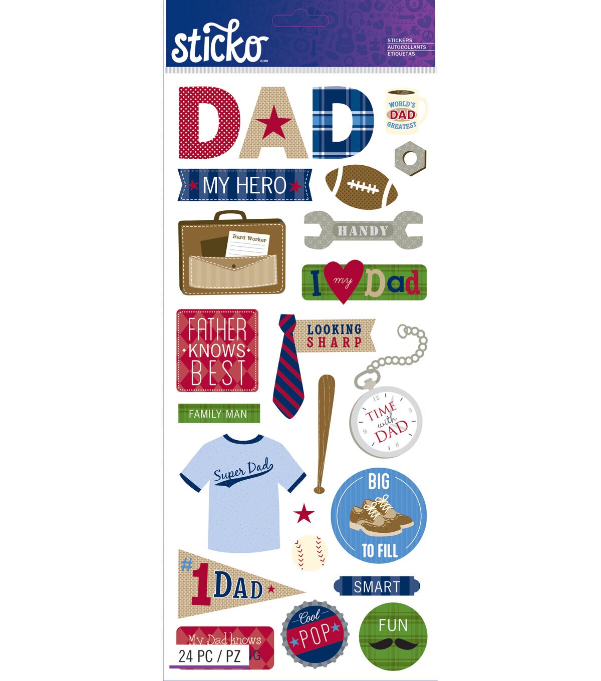 Sticko stickers are known for their bright colors and charming artwork, and these Sticko - Dad Large Icons & Words stickers are no exception! Sure to delight, these stickers are versitile and ready to add to any project you like.