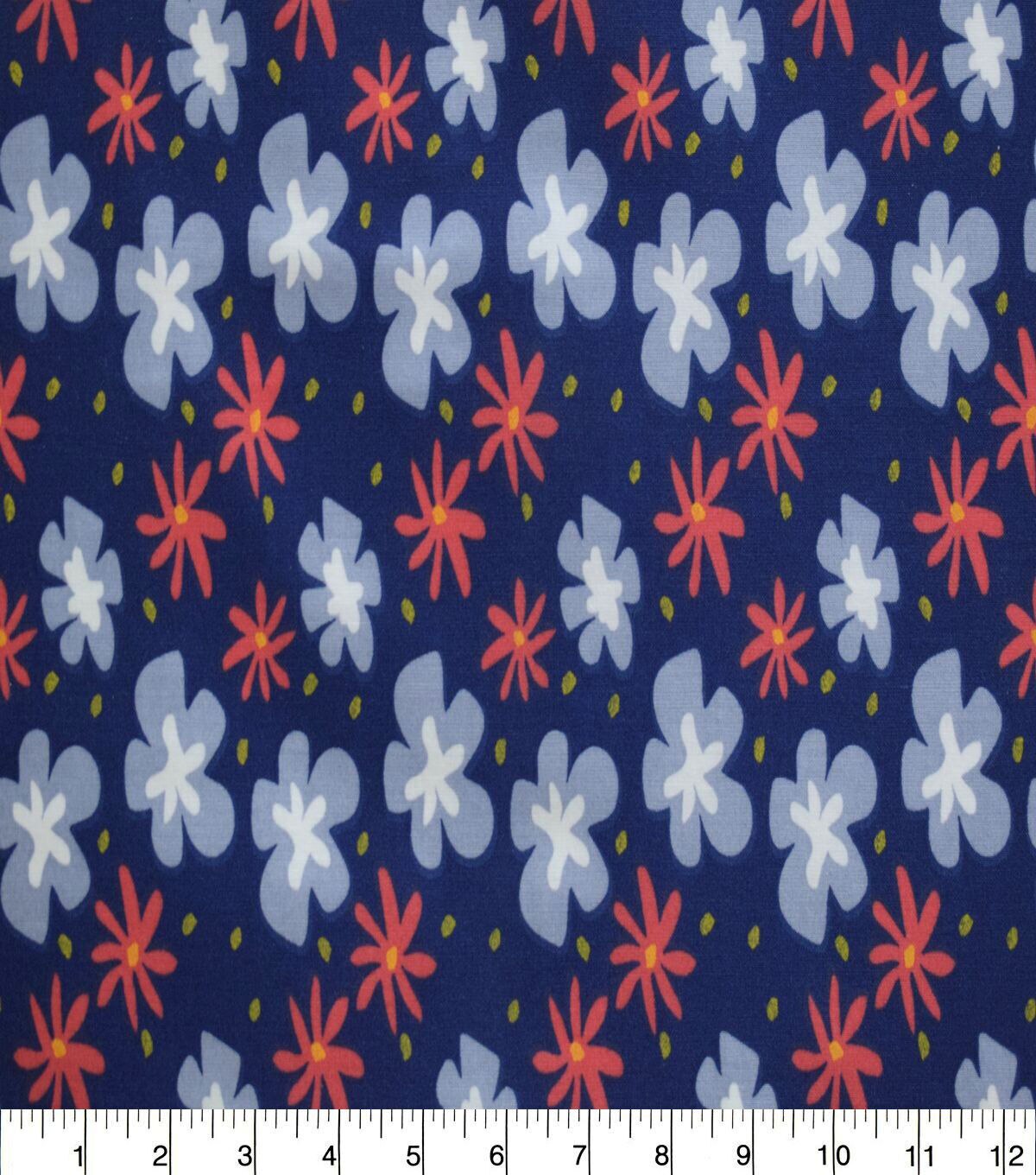 Daisies & Floral on Navy Quilt Cotton Fabric by Quilter's Showcase