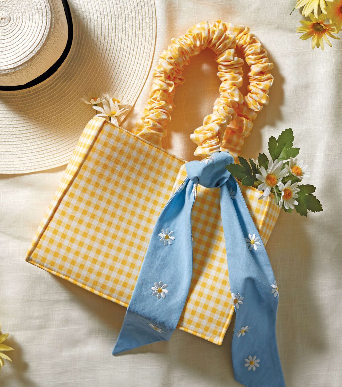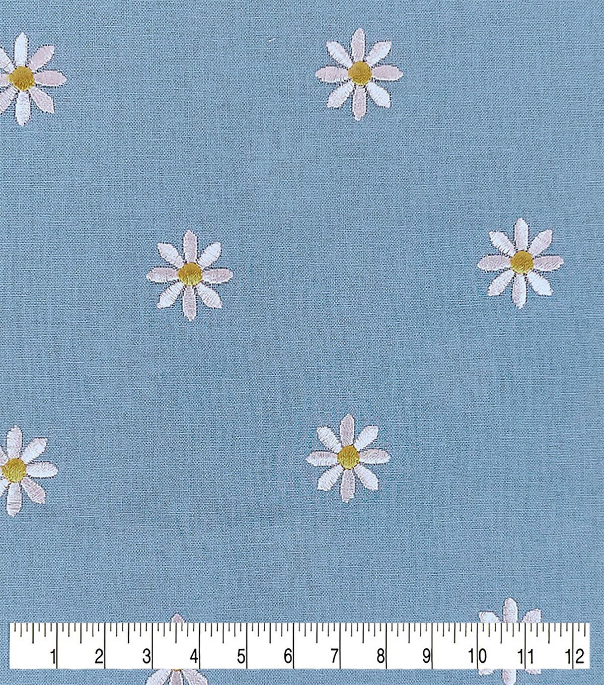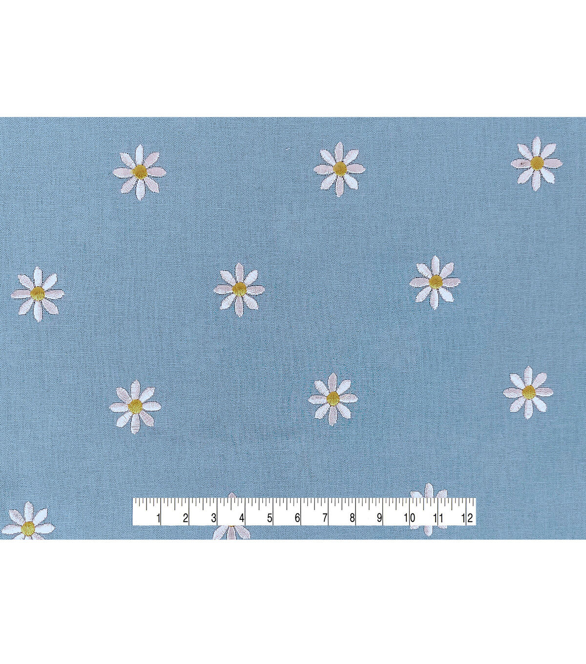 • Daisy Embroideries on Light Blue Quilt Cotton Fabric by Keepsake Calico