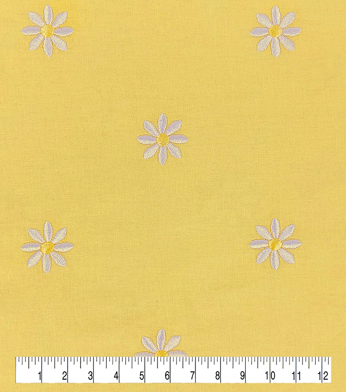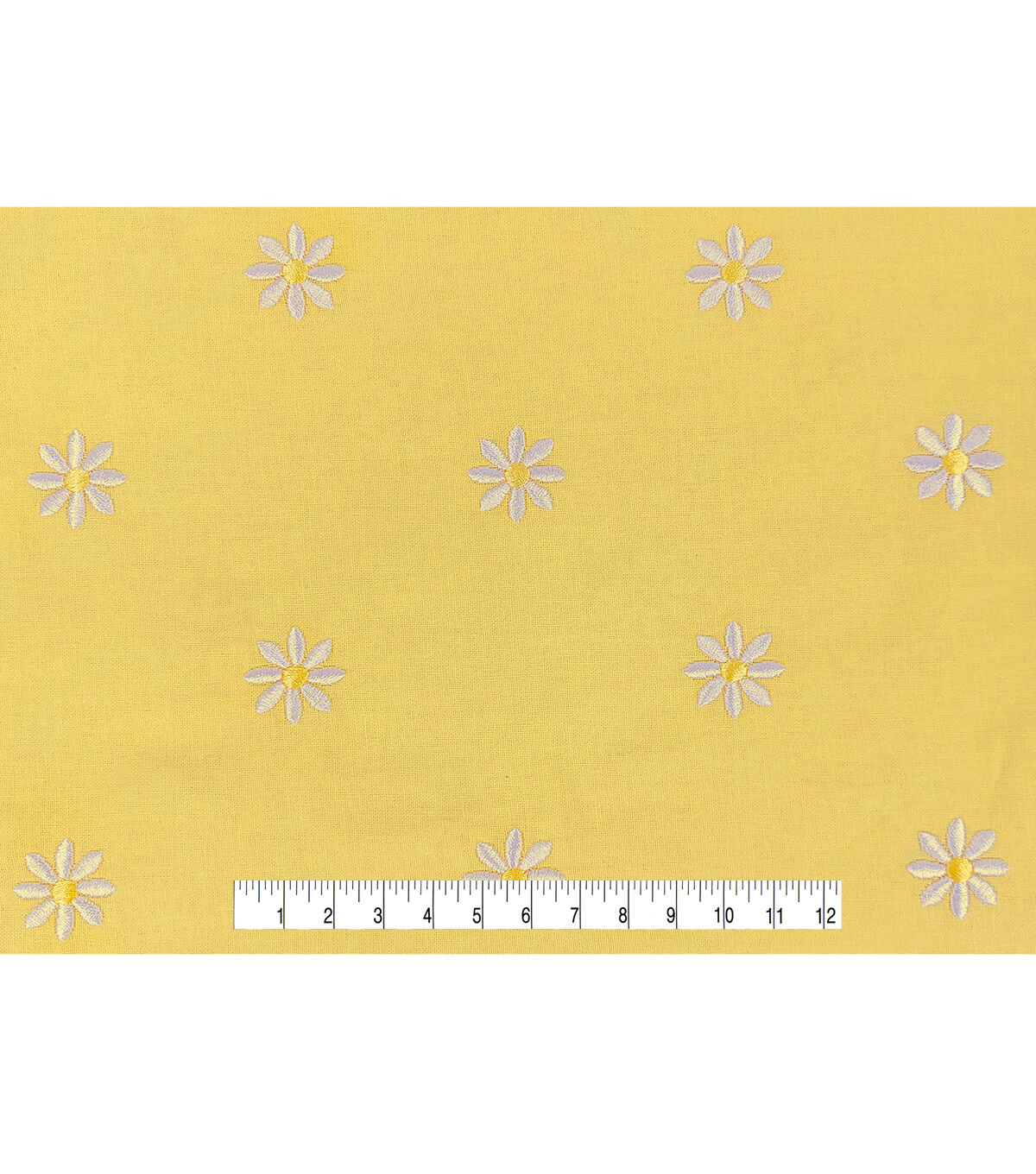 • Daisy Embroideries on Yellow Quilt Cotton Fabric by Keepsake Calico