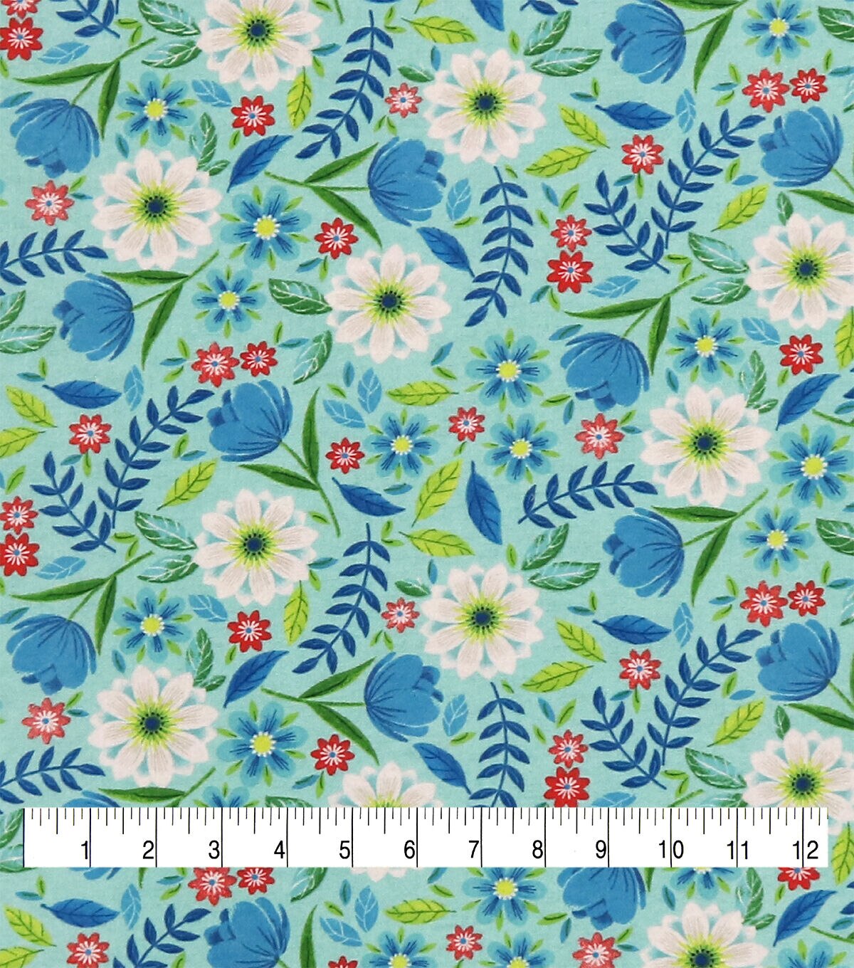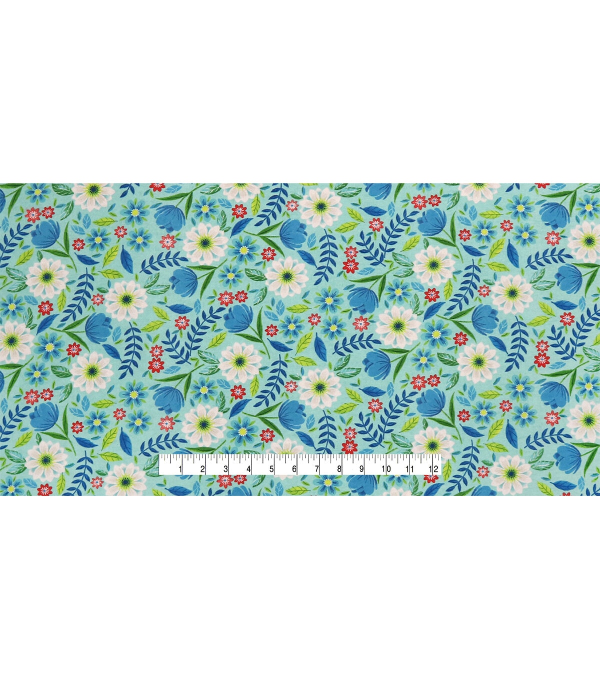 • Daisy Leaves On Blue Super Snuggle Flannel Fabric