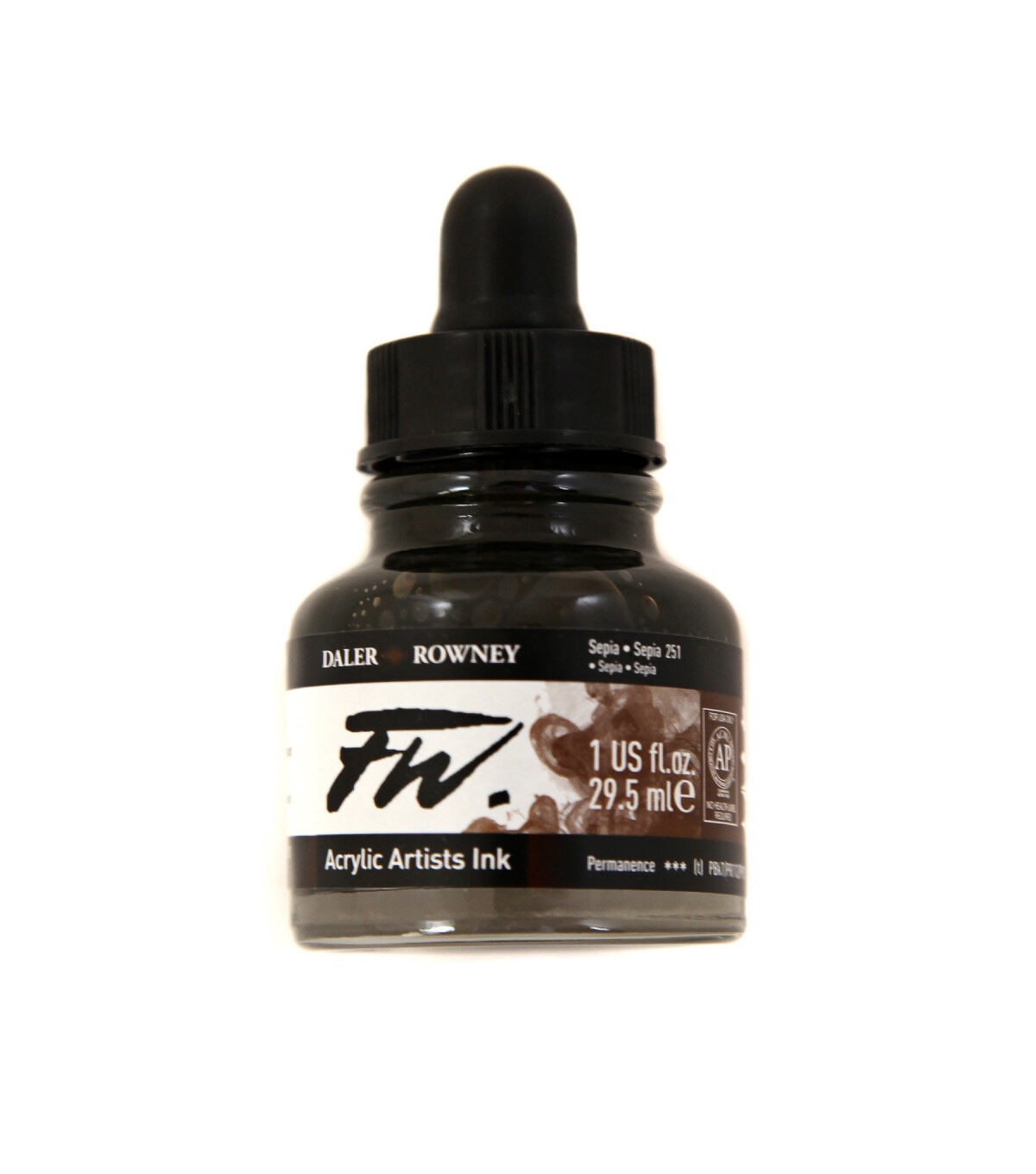 This intensely pigmented acrylic-based ink is waterproof when dry and is compatible with acrylic paint. Because it flows easily, this ink is excellent for use with technical pens, airbrushes, dip pens and traditional brushes.