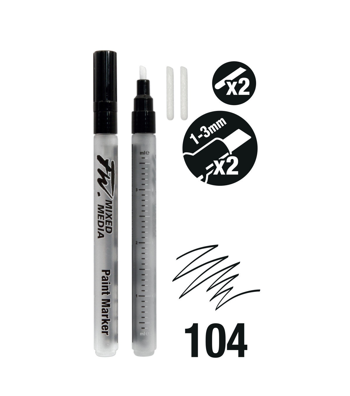 FW Empty Paint Markers allow inks and other liquid media to be applied with precision across a variety of surfaces. Choose your medium, fill up and get creating! Ideal for use with FW Acrylic Ink, these empty markers can create unlimited individual colors through mixing and dilution and can also be filled with other mediums such as watercolor and calligraphy inks. Rinse out your color and wash them for re-use; you can also mix colors with precision as there are volume measurements on each marker.