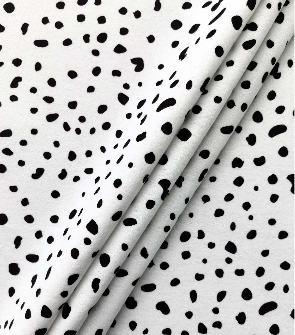 Bring a touch of whimsy to your nursery with our Dalmatian Dots on White Nursery Flannel Fabric. This 100% cotton fabric features playful black and white Dalmatian spots on a crisp white background. Perfect for creating cozy blankets, soft bedding, and adorable decor for your little one's room.