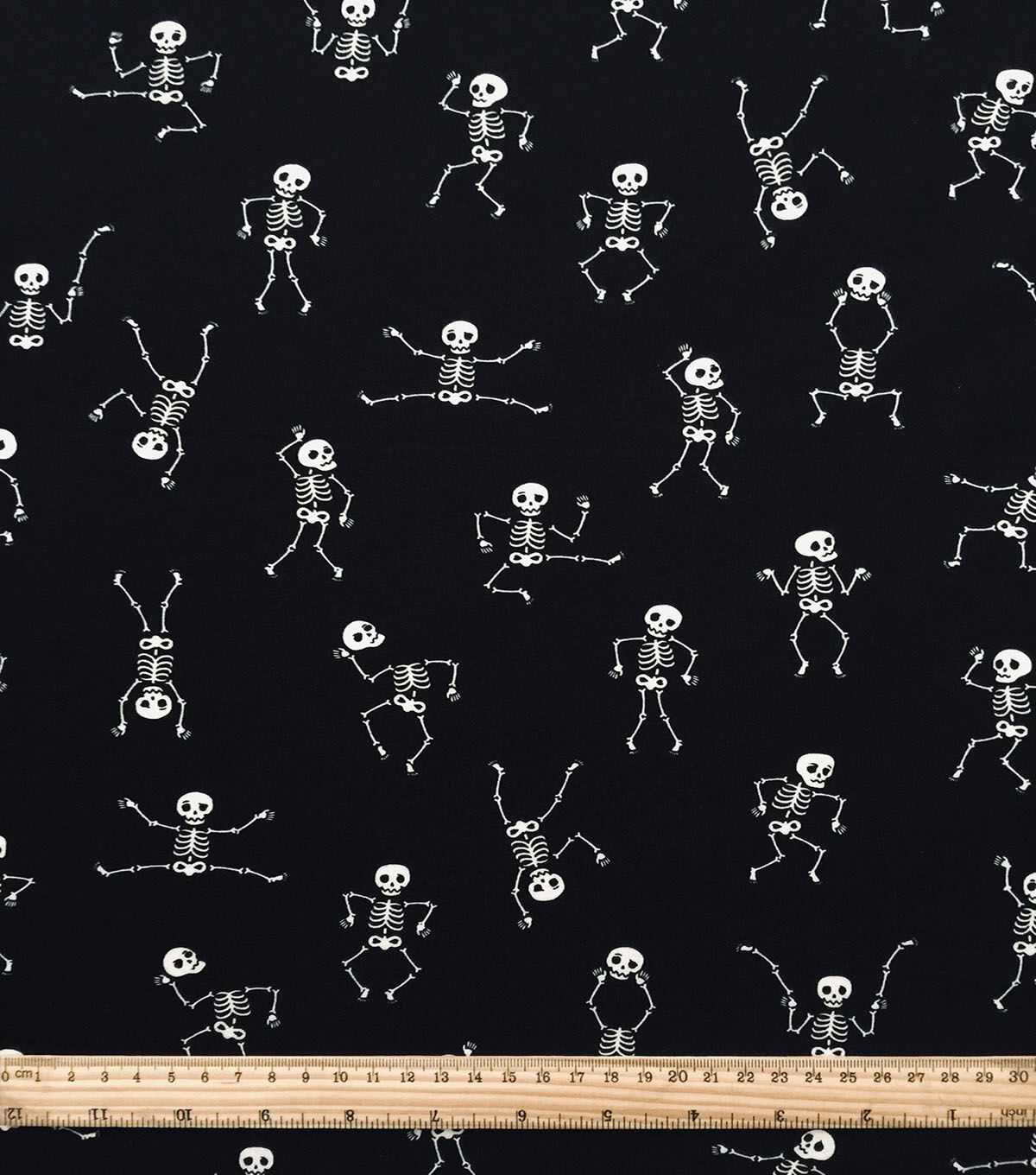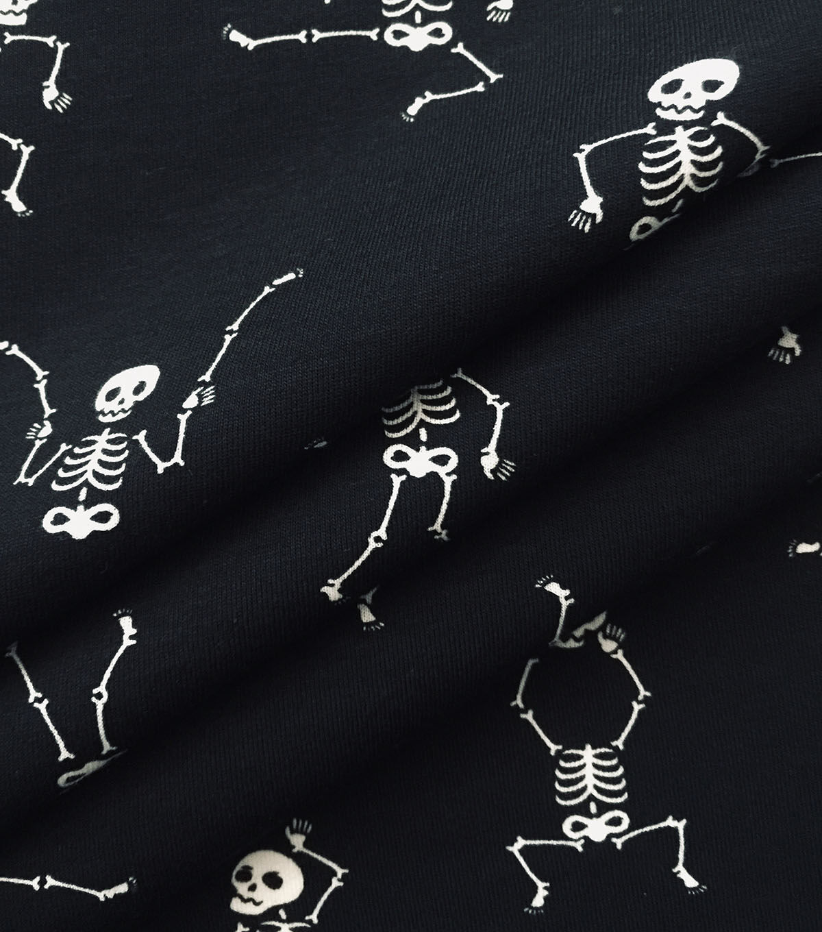 • Dancing Skeleton On Black Jersey Knit Fabric by POP!