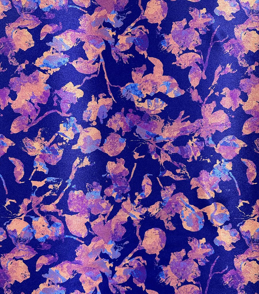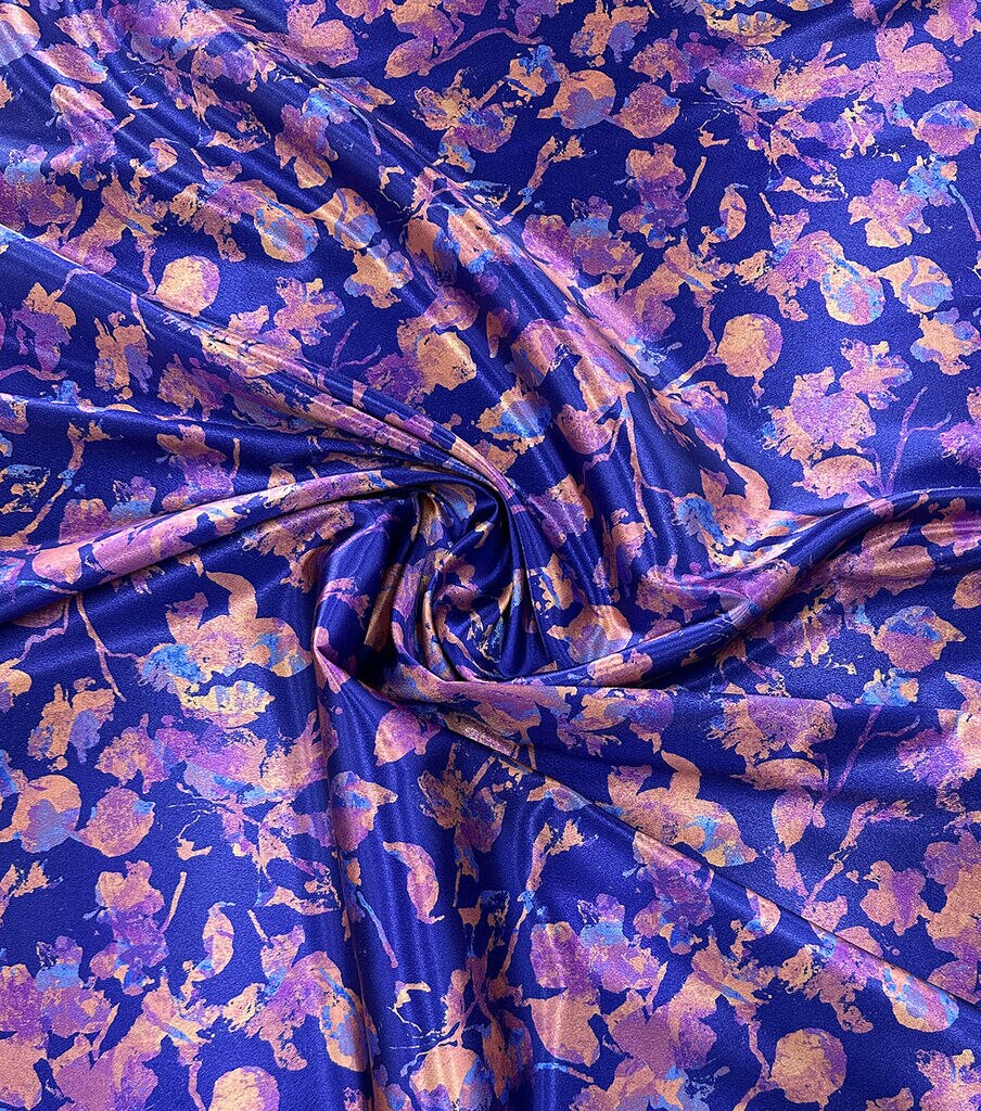 Upgrade Your Wardrobe with Dark Blue & Purple Floral Silky Charmeuse Fabric