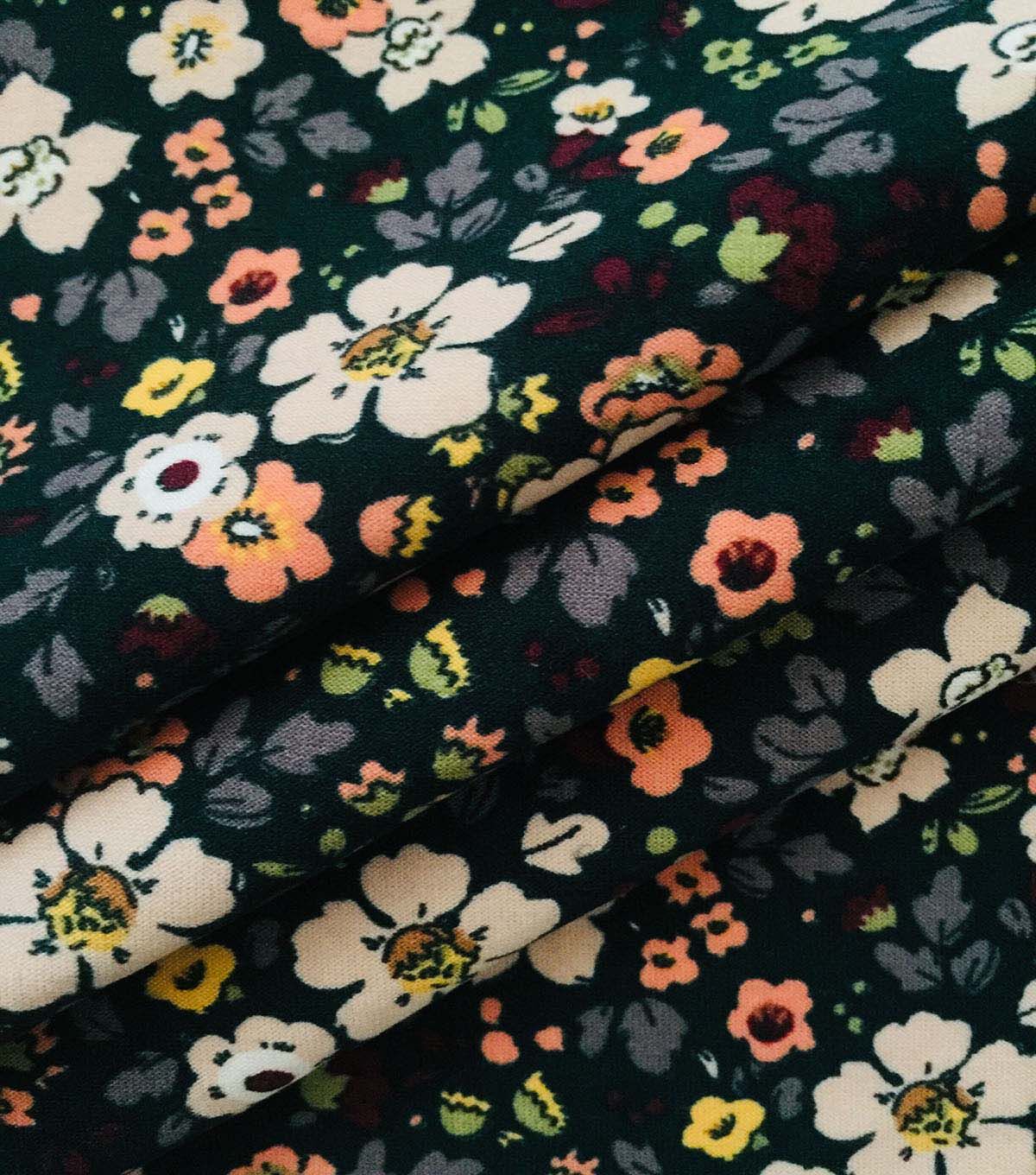 Dark Ditsy Floral Double Brush Jersey Knit Fabric