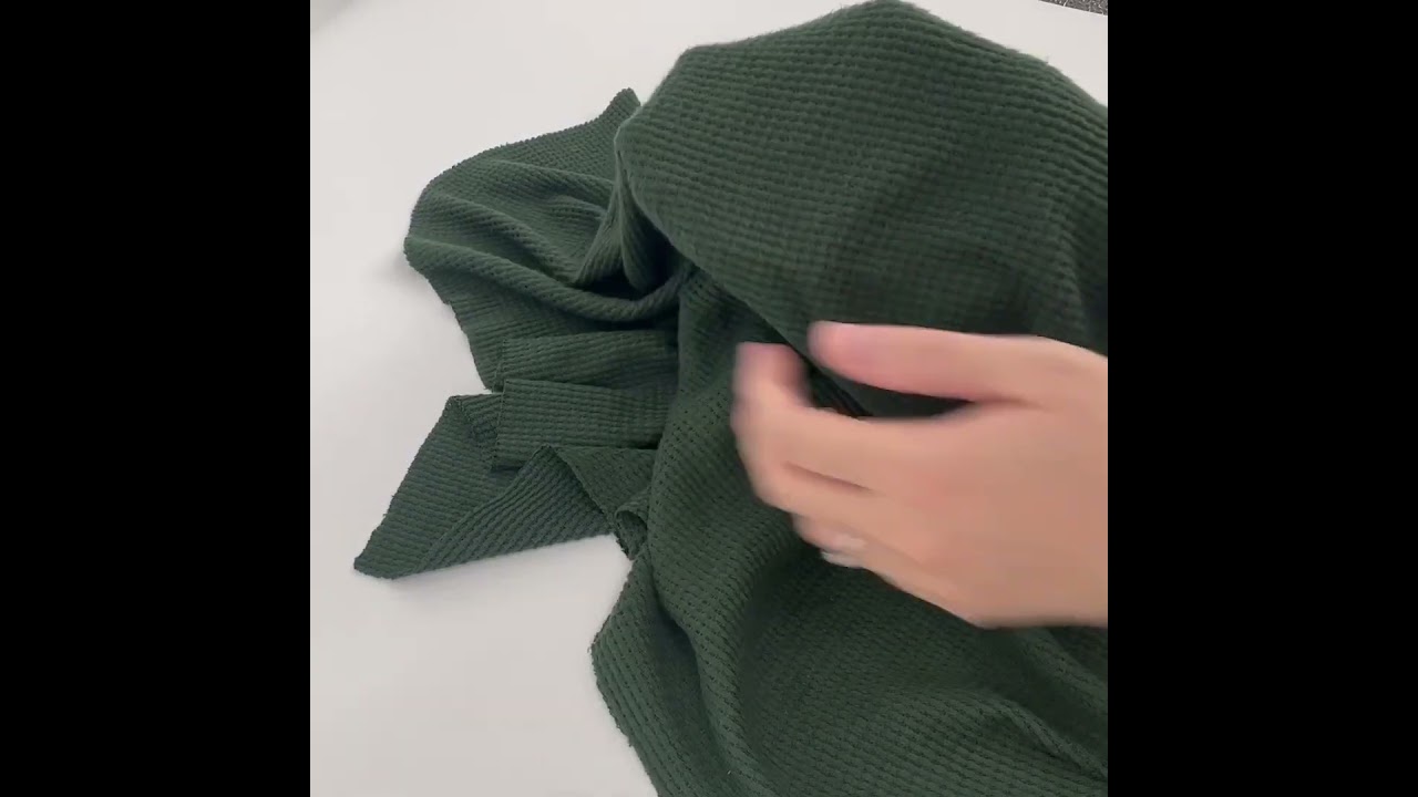 • Dark Green Solid Brushed Waffle Knit Fabric