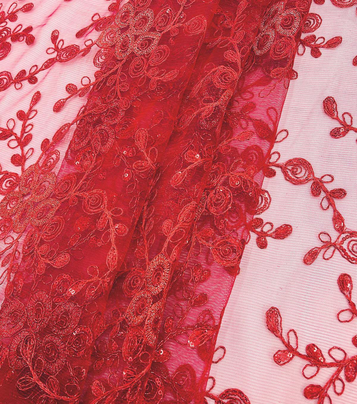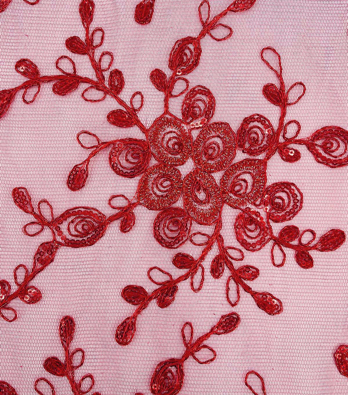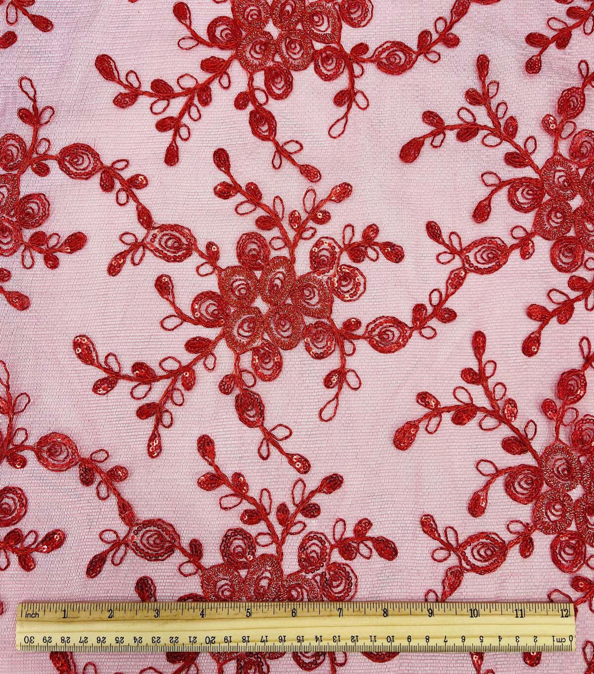 Dark Pink Sequin Bouquet Mesh Fabric
