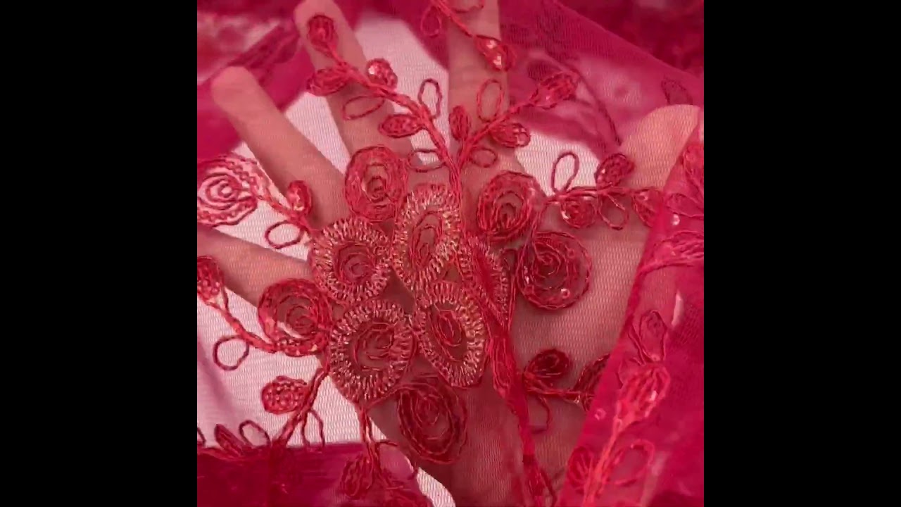 • Dark Pink Sequin Bouquet Mesh Fabric