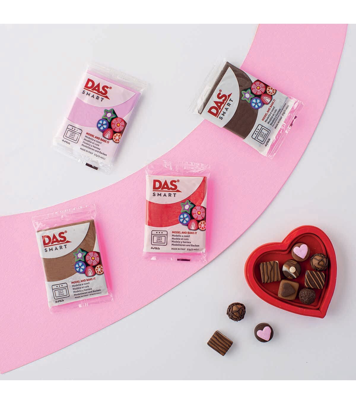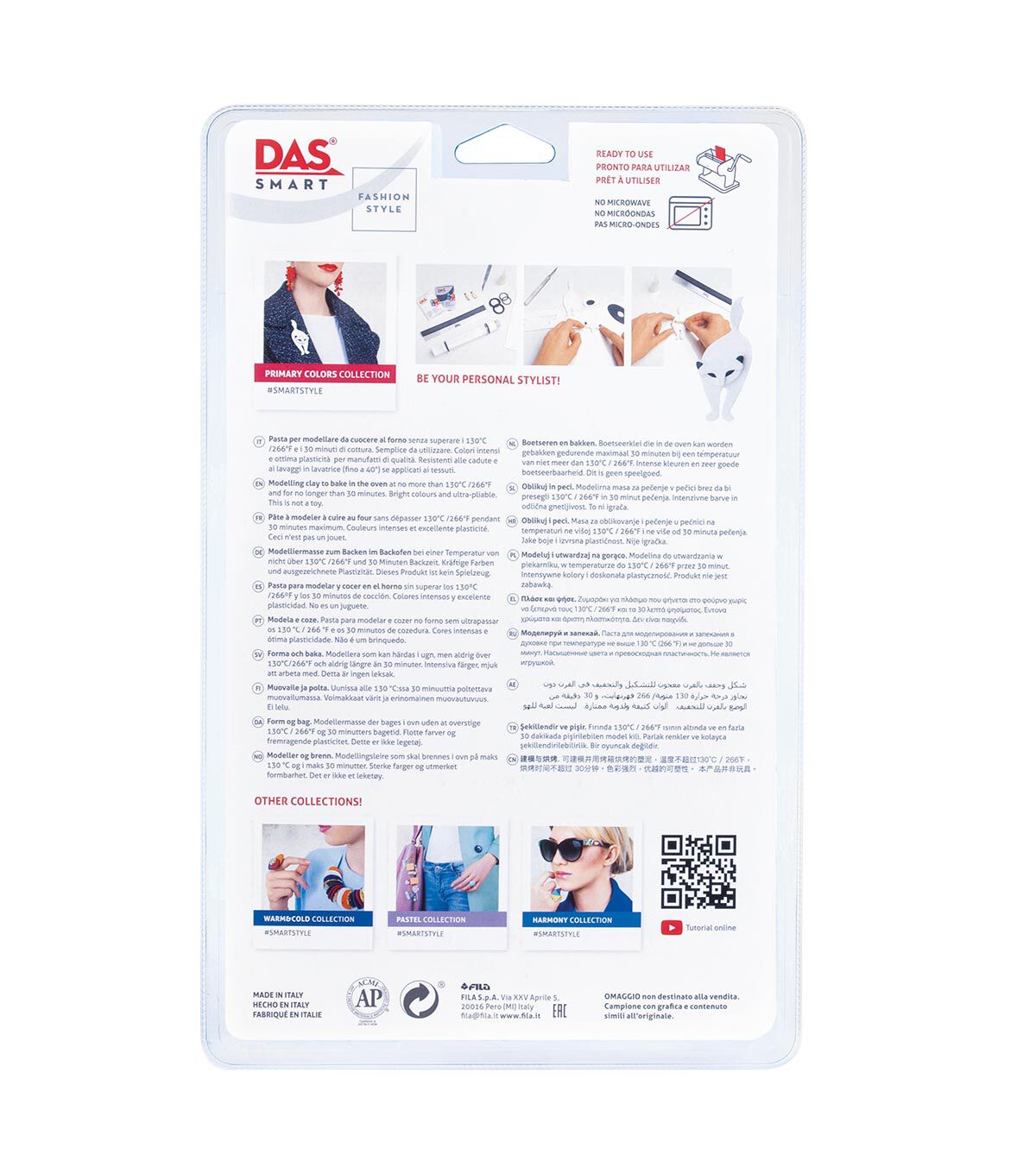 Das Smart is a new polymer, oven-hardening clay, ideal for making unique, hard and resistant creations. Easy to manipulate, with a compact and versatile structure, it is ideal for precision modeling and due to its excellent plasticity, remains unvaried and compact before and after baking. It is available in 4 thematic sets, specially designed by color experts. All colors can be molded and combined easily! The 27.5 g sheet-shaped block has been specially designed to ensure easy and fast manipulation. Das Smart is easy to bake in a standard kitchen oven at 130° for up to 30 minutes. Objects can be cooked several times to add new details and layers. Made in Italy, gluten-free and with no animal-derived ingredients.