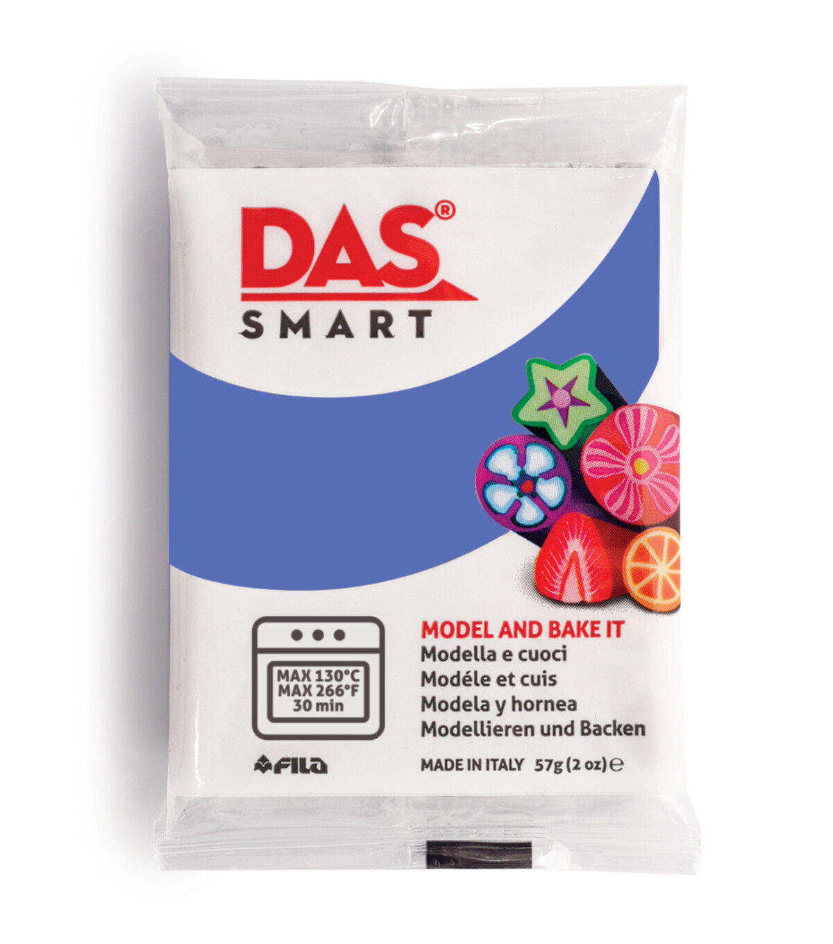 Das Smart is a new polymer, oven-hardening clay. Due to its excellent plasticity, it remains unvaried and compact before and after baking. All colors can be molded and combined. Das Smart is easy to bake in a standard kitchen oven at 130 degrees F for up to 30 minutes. Objects can be cooked several times to add new details and layers. Made in Italy, it is gluten-free and contains no animal-derived ingredients.